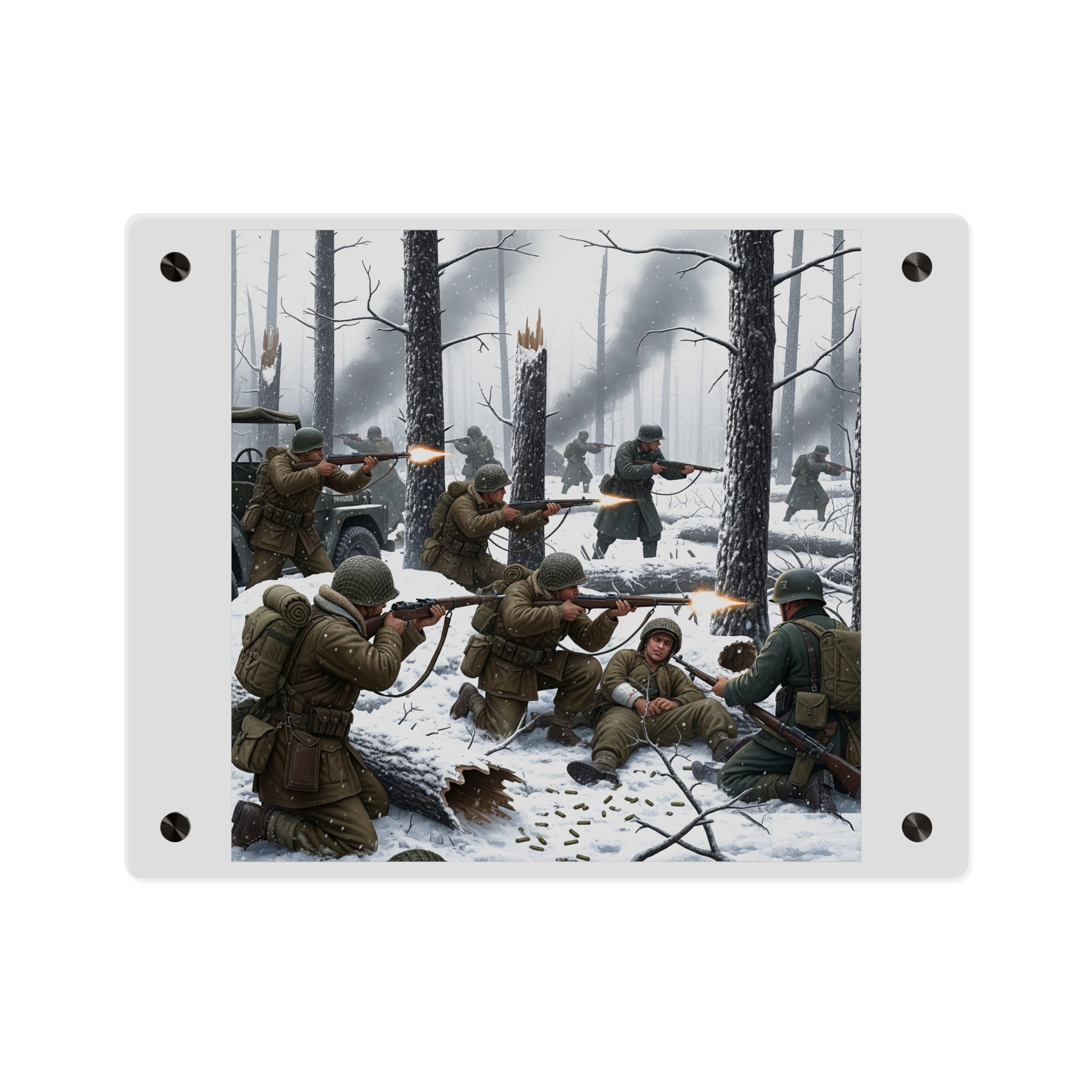 Acrylic Wall Art Panel - 101st Airborne Division fighting the German Army at the Battle of Bastogne