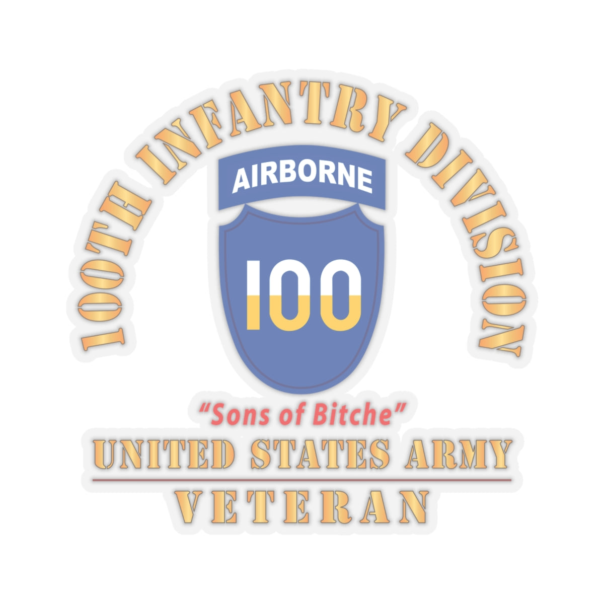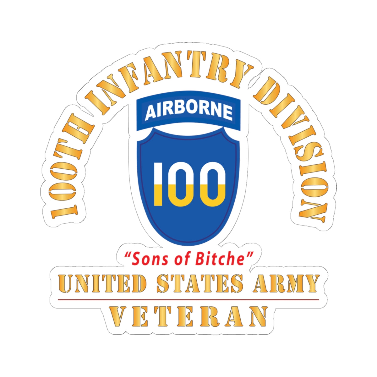 Kiss-Cut Stickers - Army - SSI - 100th Division (Airborne) - Sons of Bitche - US Army Veteran X 300
