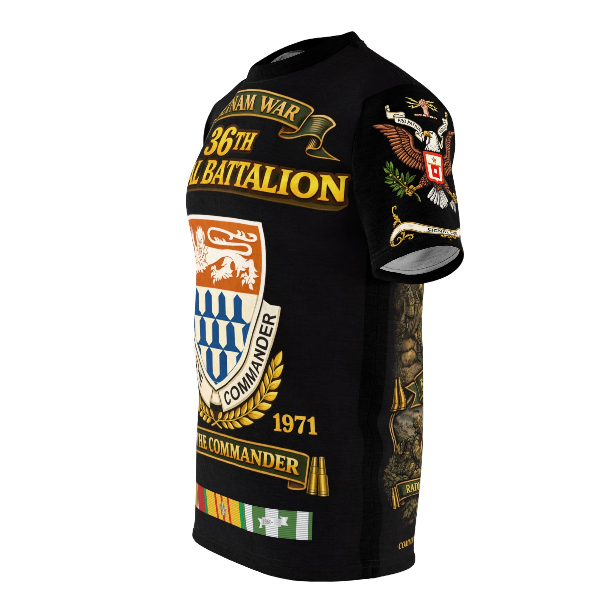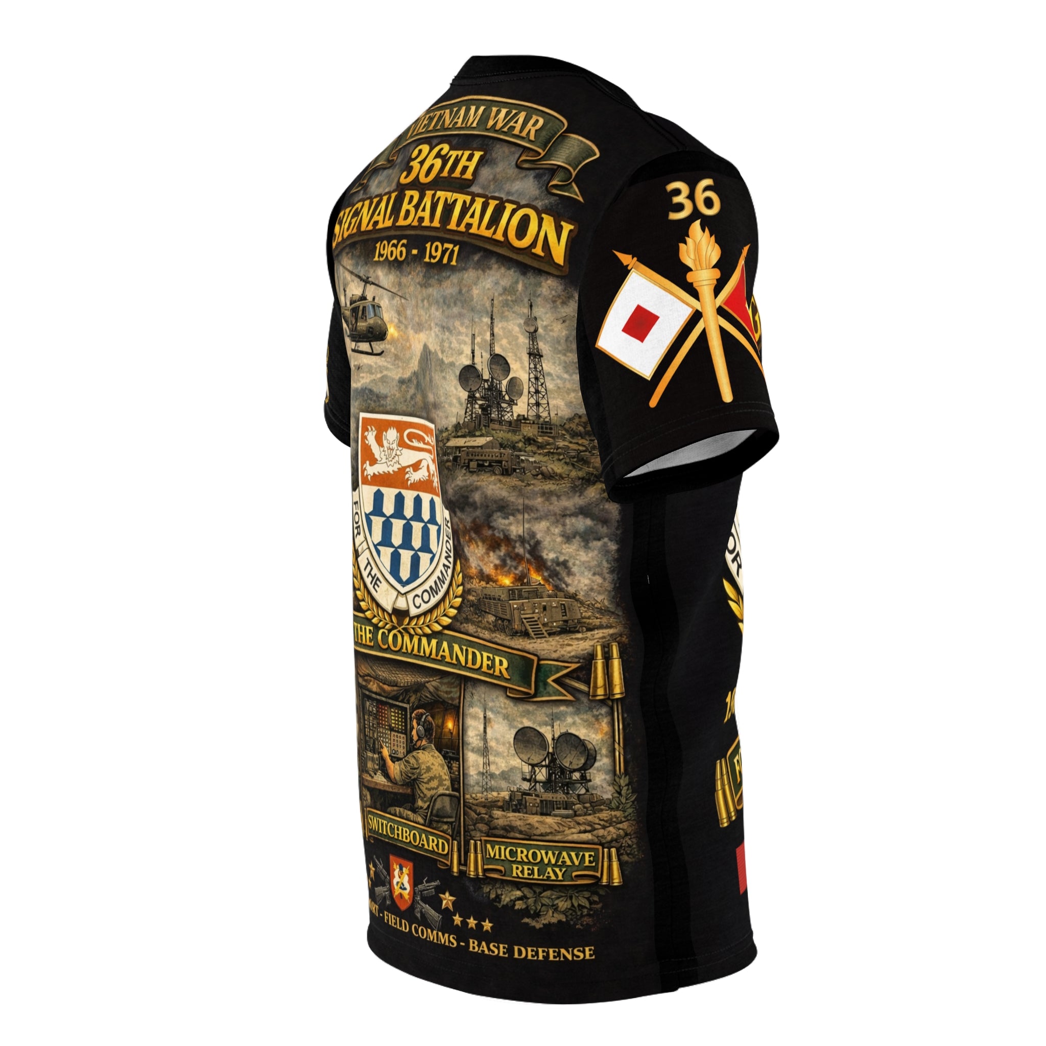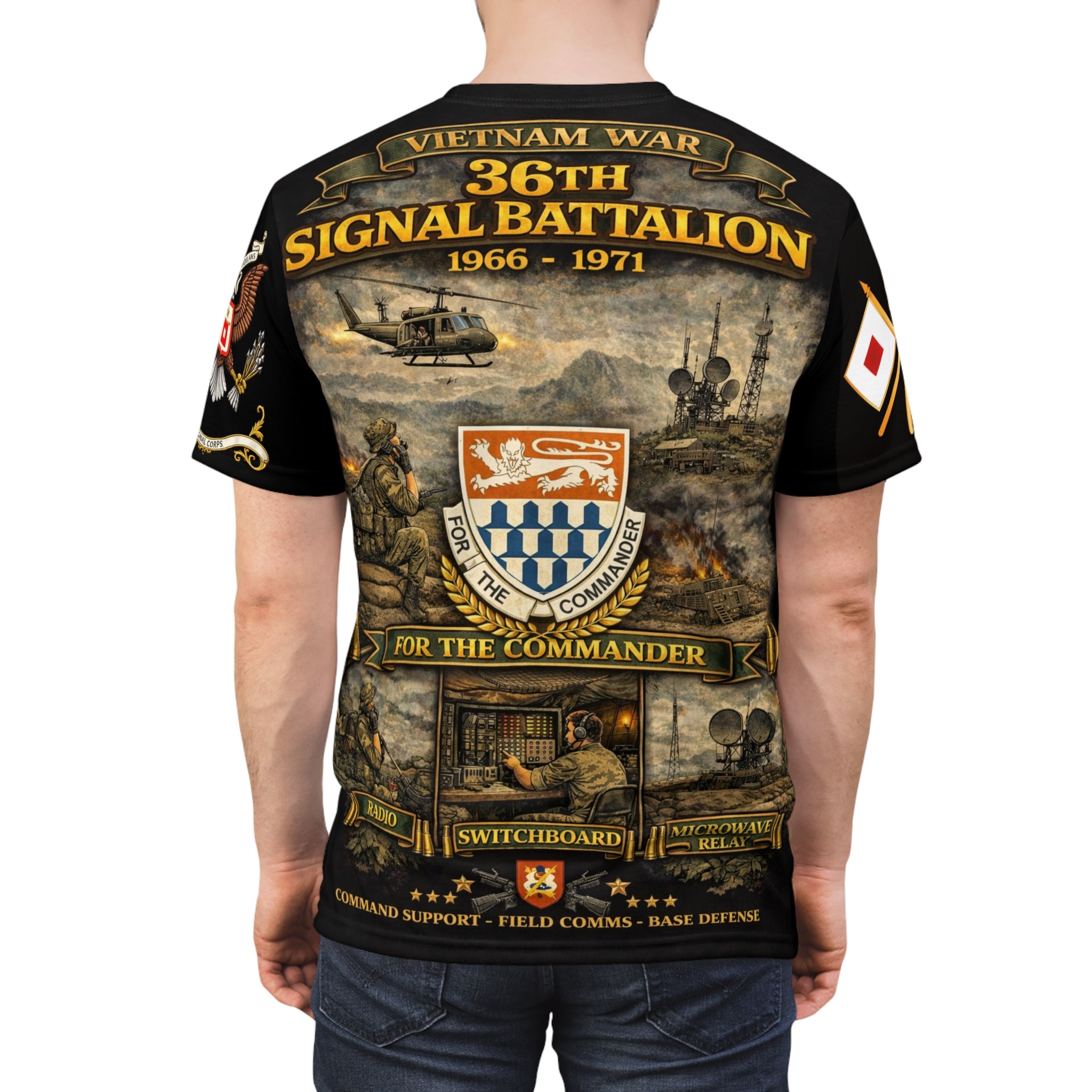 Wear this all-over print tee as a quiet salute to the 36th Signal Battalion and their vital communications role during the Vietnam War. The design echoes radio static and long nights, stitched across every inch so the memory feels lived-in, not applied.