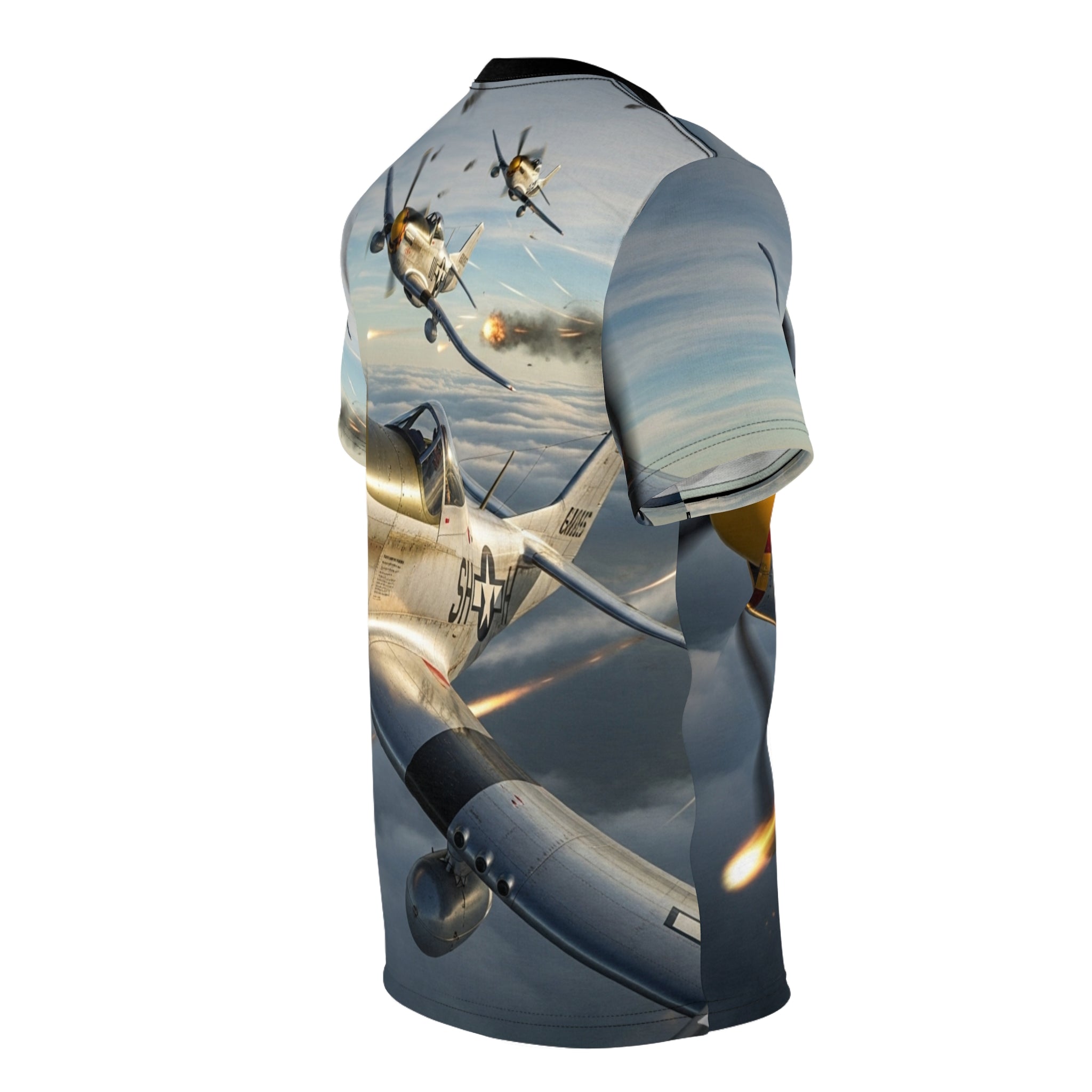 AOP Unisex Tee - P-51 Aircraft - Dog Fight - WWII