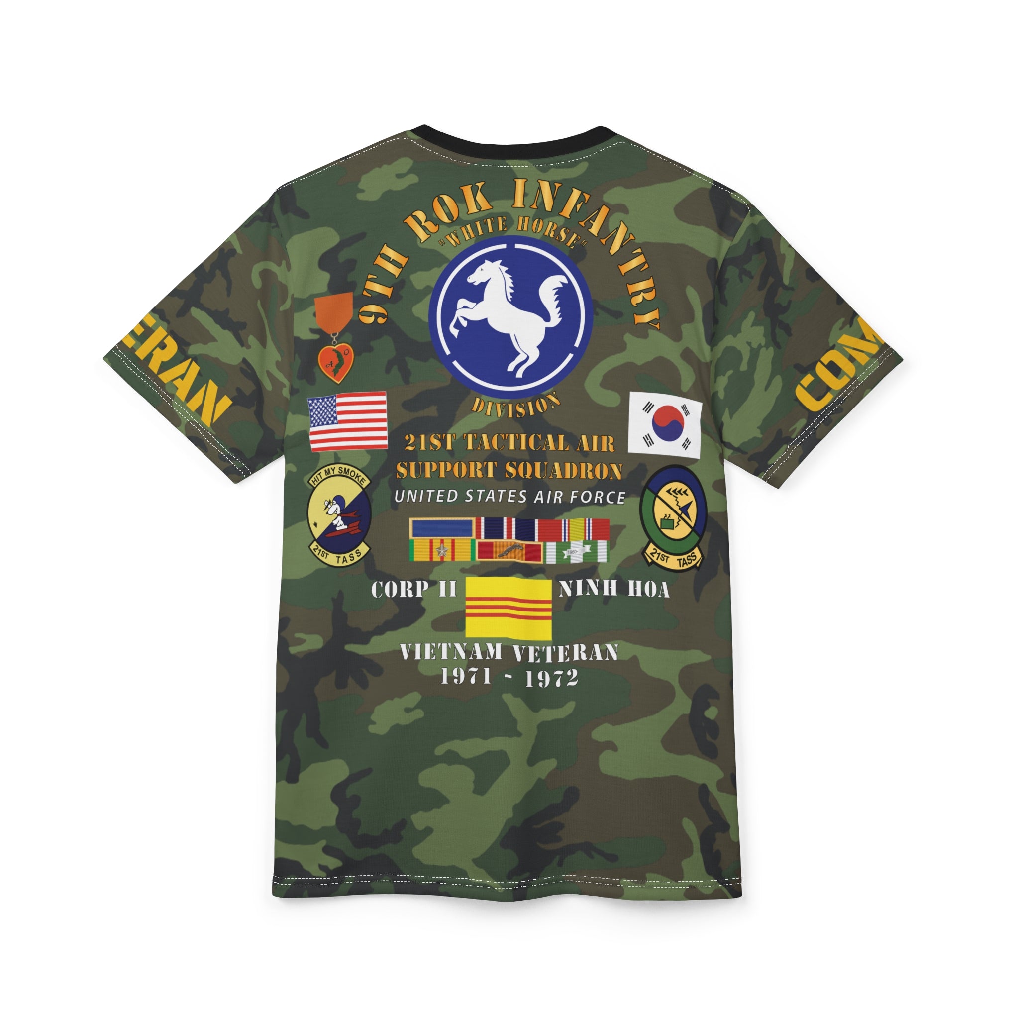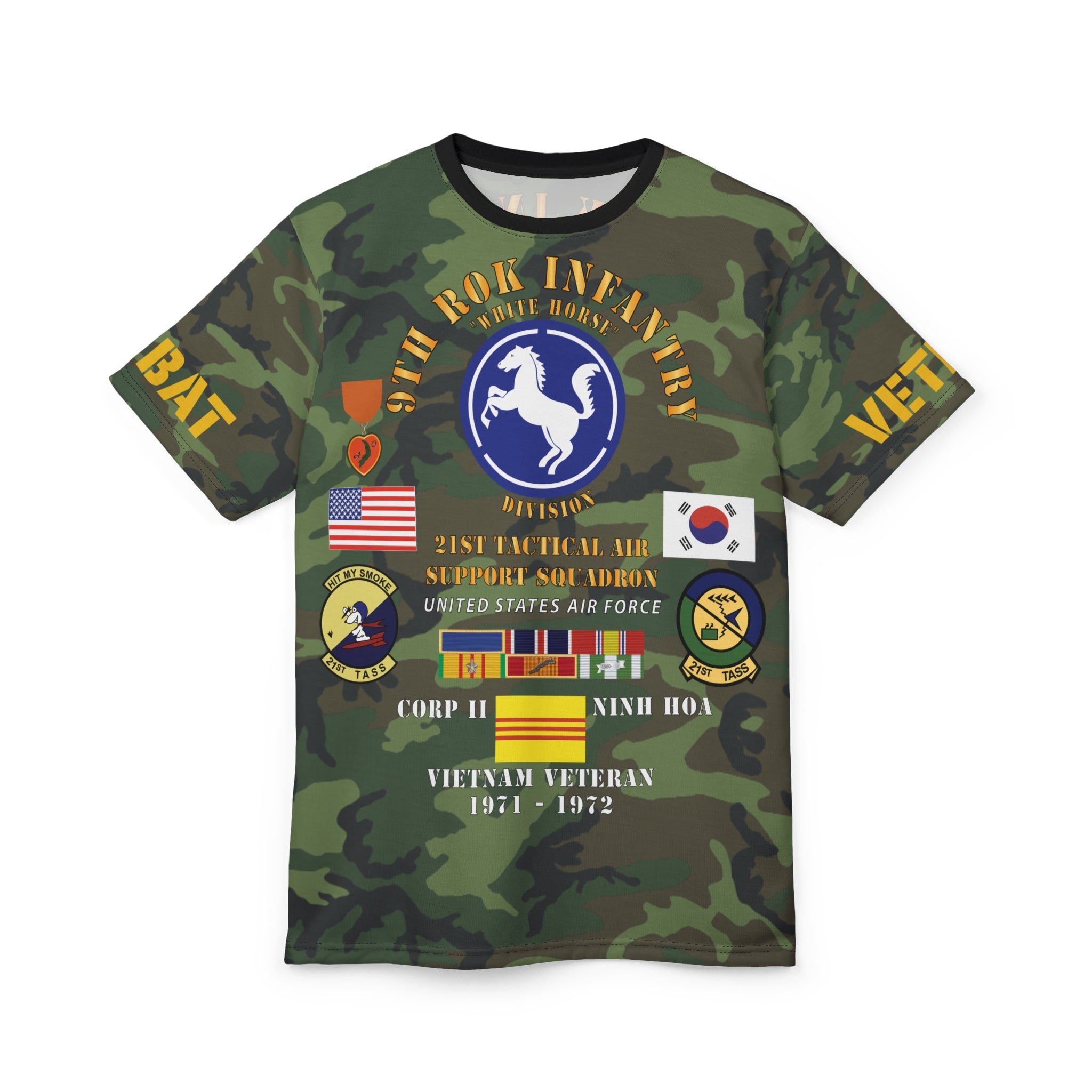 Print Unisex Tee, Stylish Outdoor Shirt, Trendy Graphic Top, Unique Camouflage - 21st TAS Army Brown  Woodland Camo