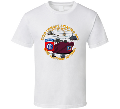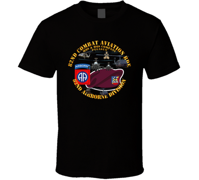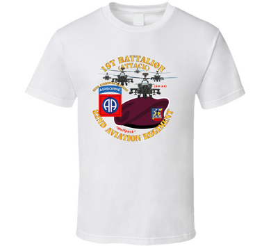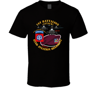Army - 1st Bn 82nd Avn Regiment - Maroon Beret W Atk Helicopters T Shirt