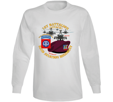 Army - 1st Bn 82nd Avn Regiment - Maroon Beret w Atk Helicopters V1 Long Sleeve