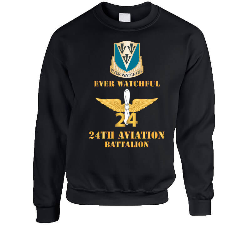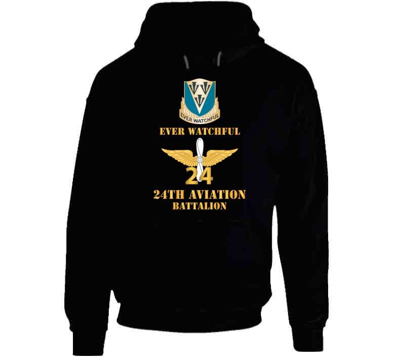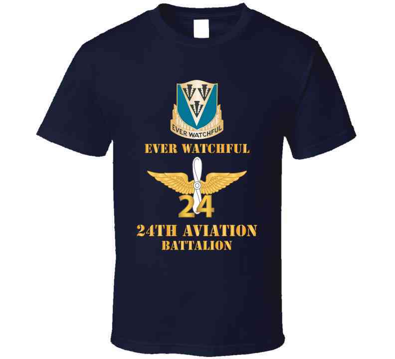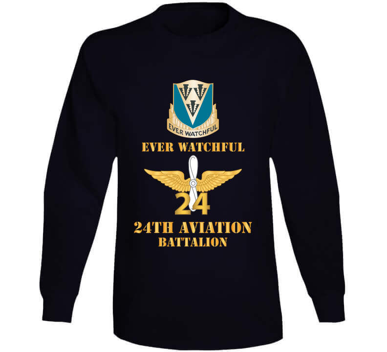 Army - 24th Aviation Battalion - Dui - Ever Watchful W Br - 24 Bn Number X 300 T Shirt, Various, Classic, Black