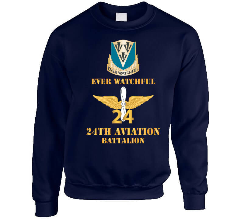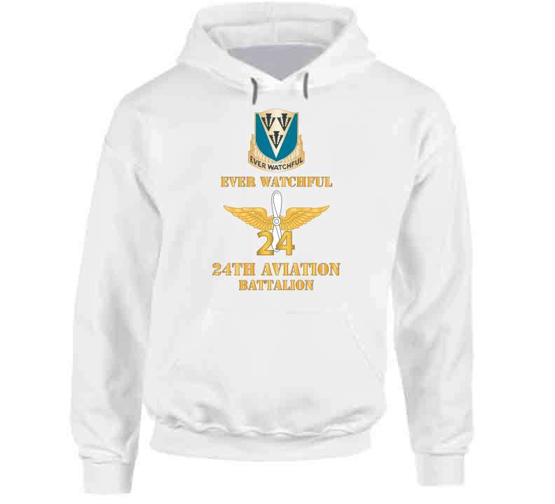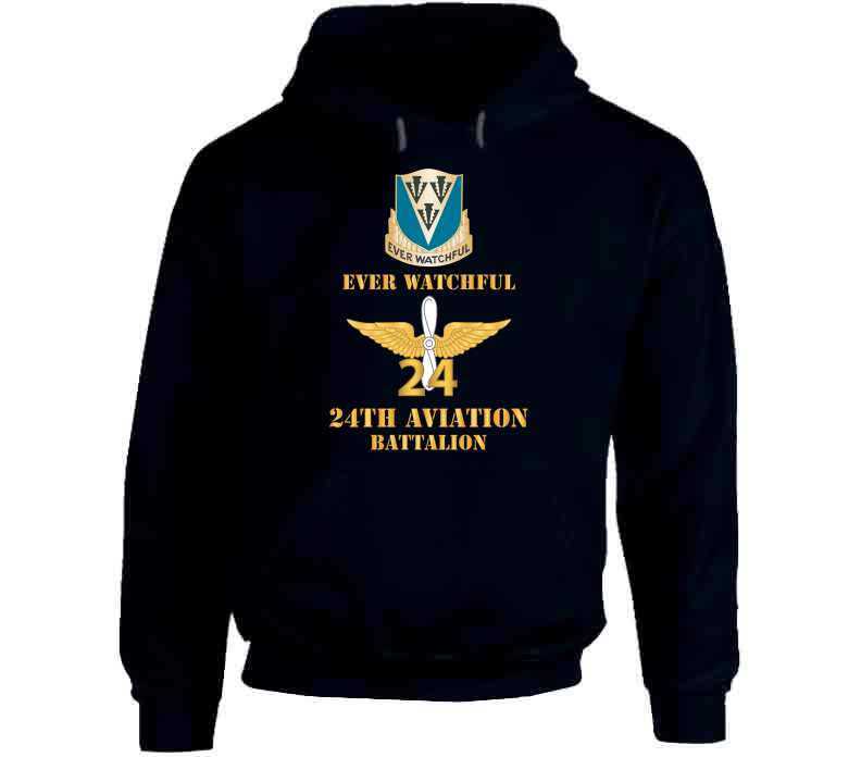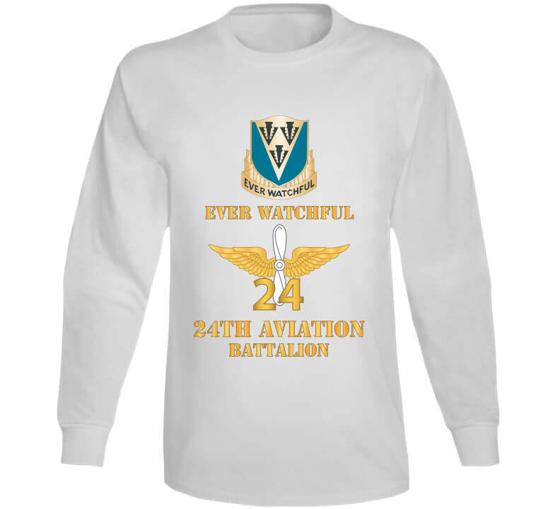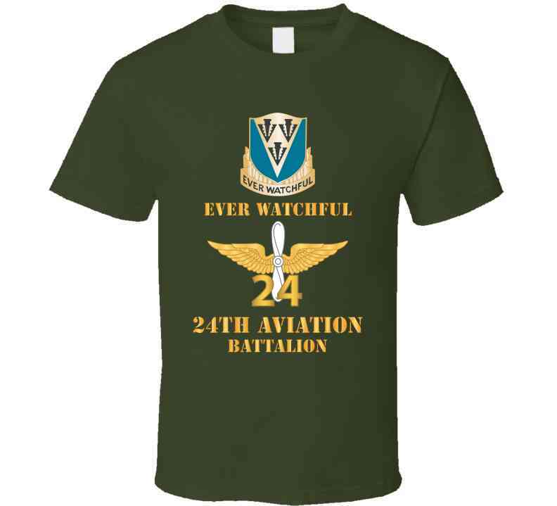 Army - 24th Aviation Battalion - Dui - Ever Watchful W Br - 24 Bn Number X 300 T Shirt