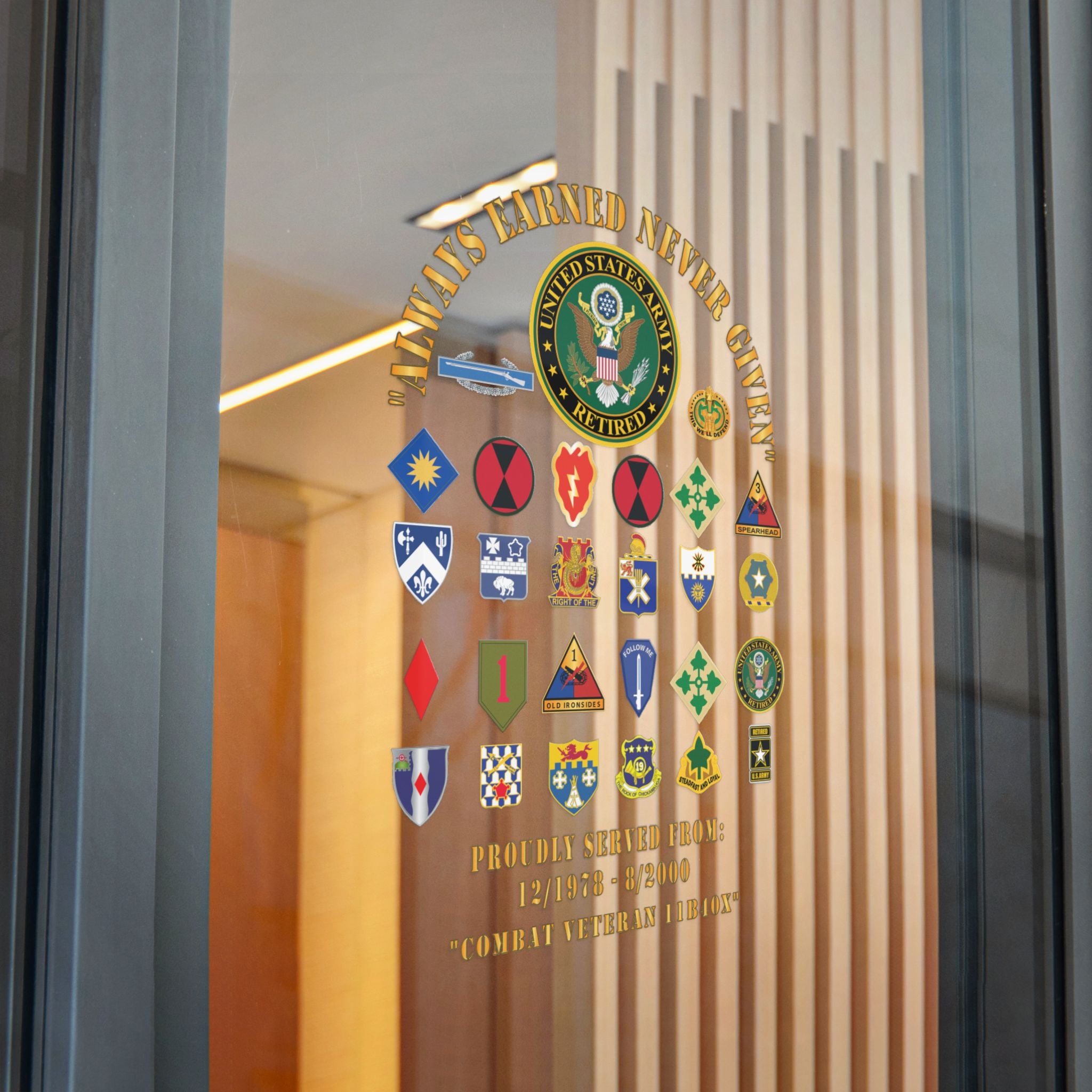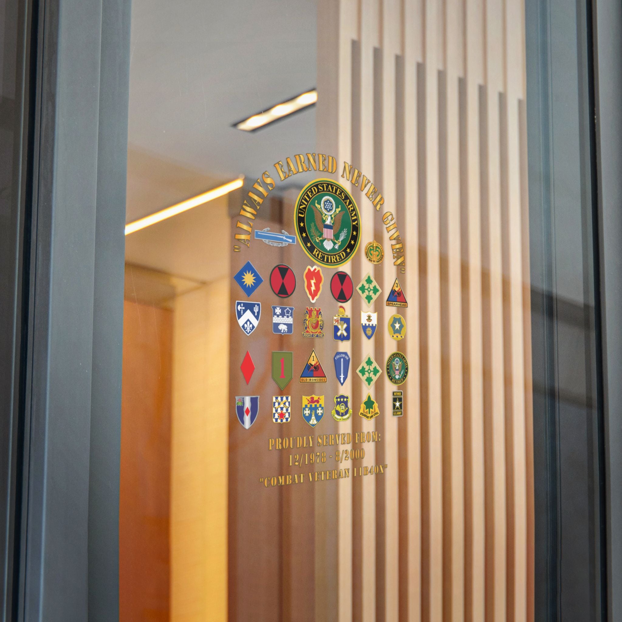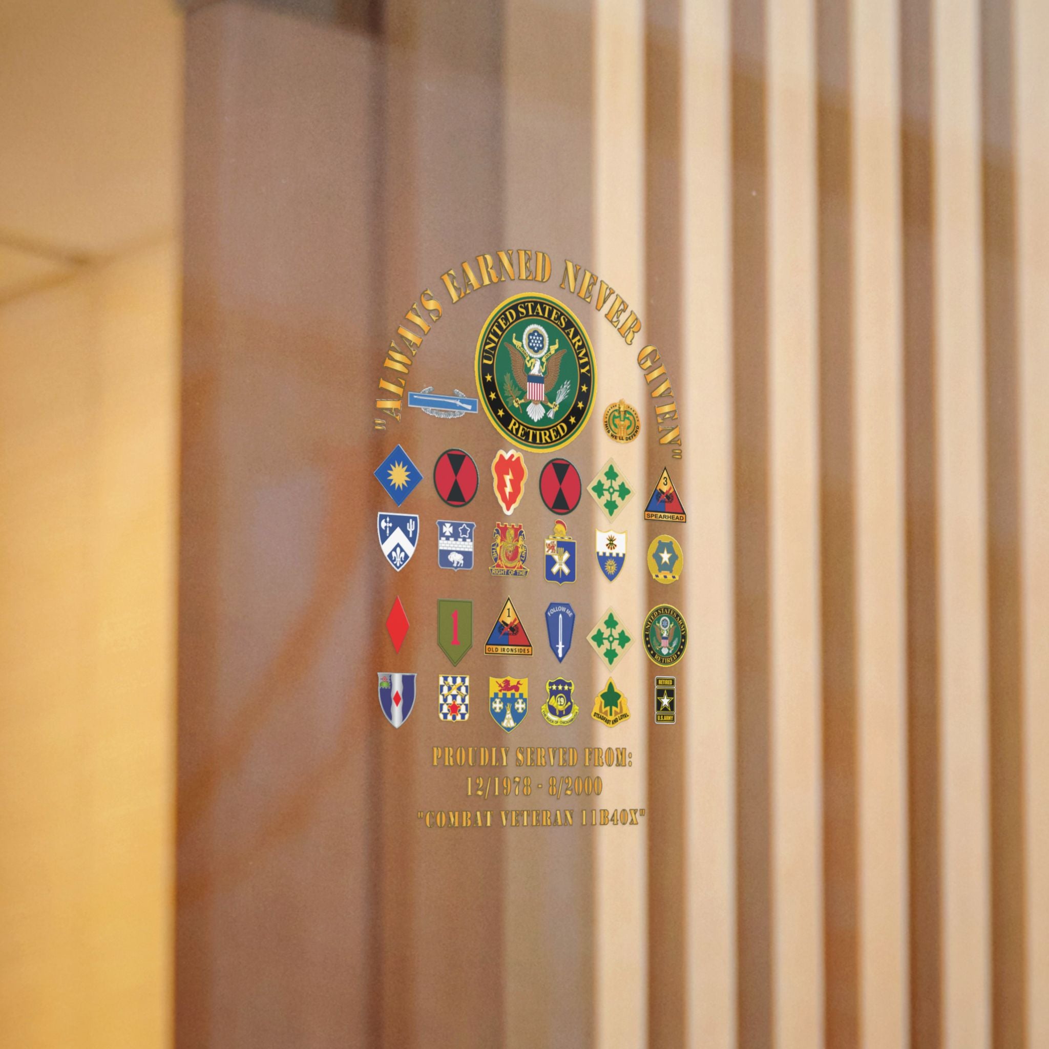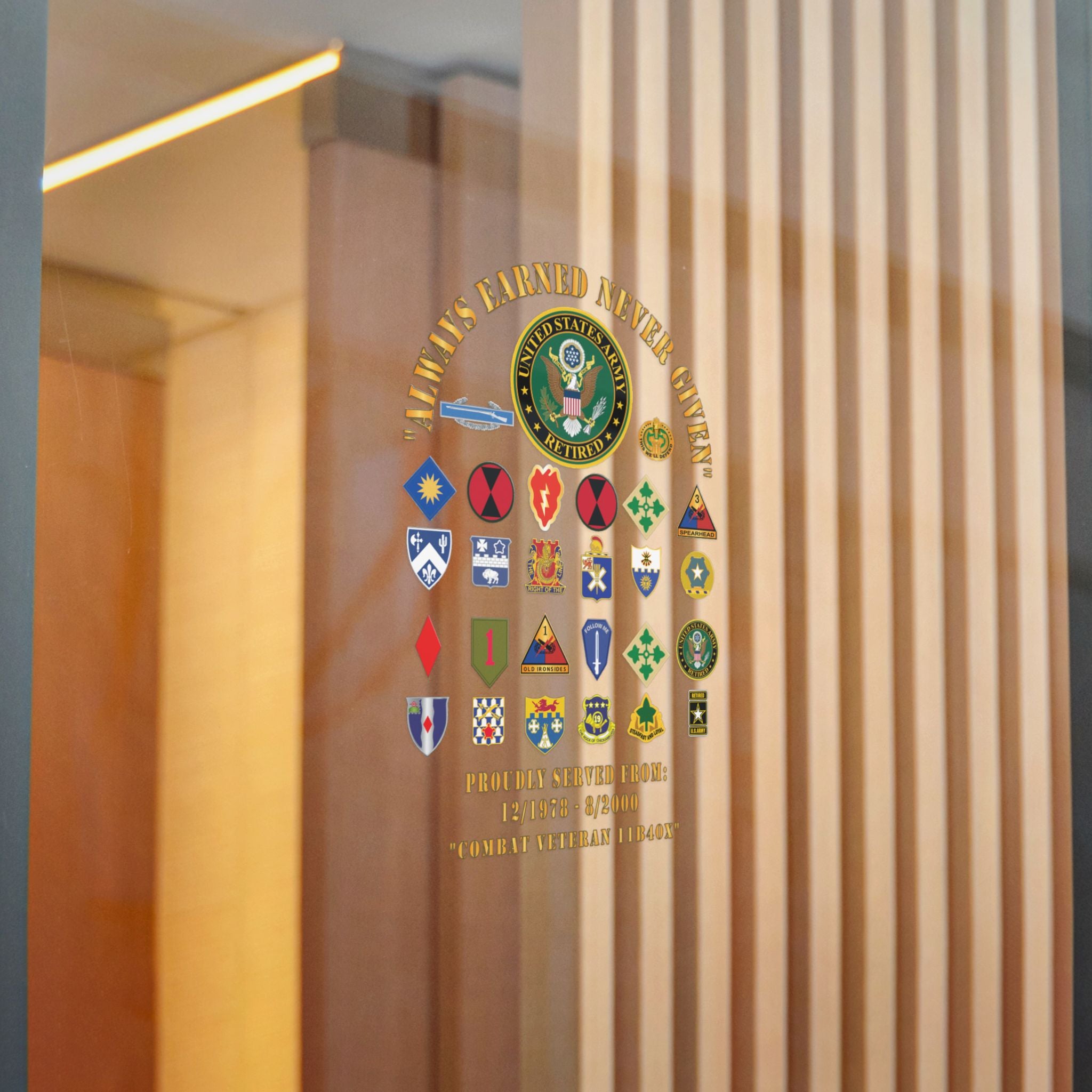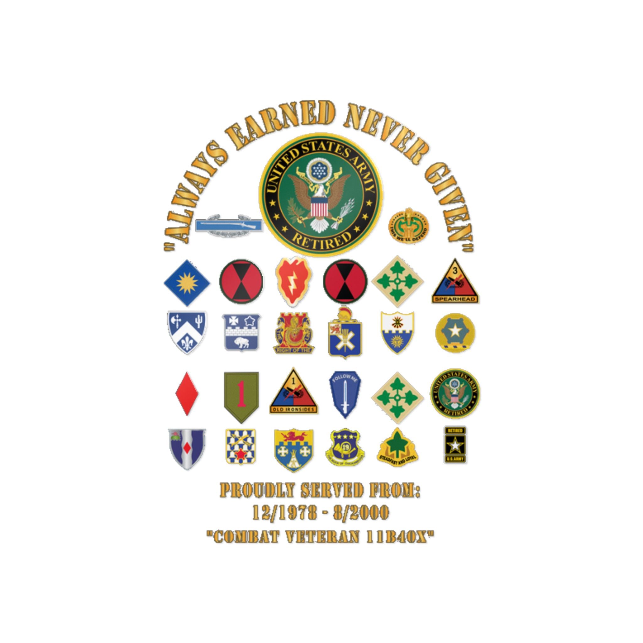 Military Die-Cut Stickers, Proud Veteran Decals, Customizable Designs for Gifting, Army Stickers for Celebration - Combat Veteran - 11B40X - Retired Army with Multi Units