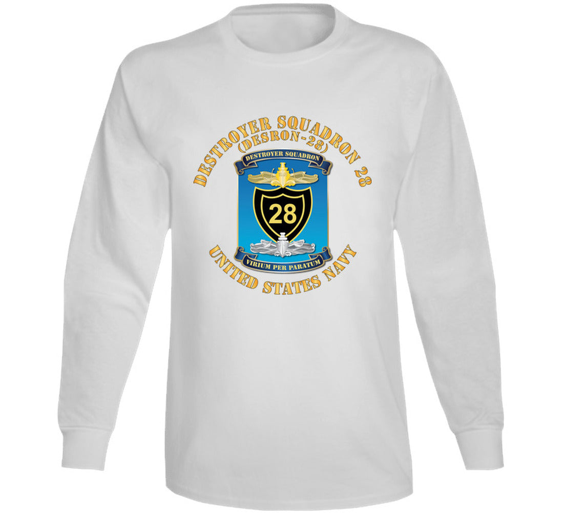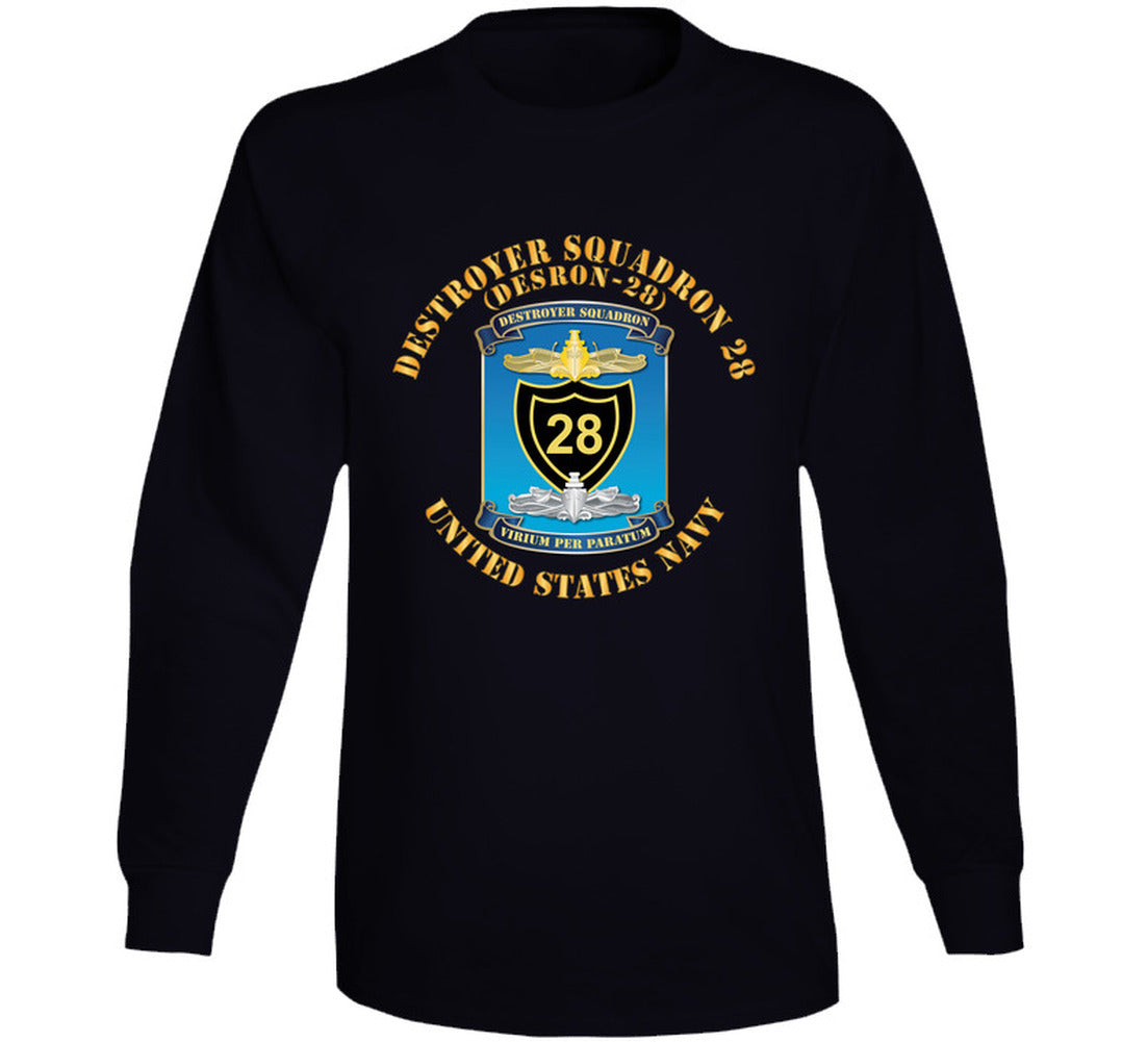 Honor the legacy of Destroyer Squadron 28 with this authentic DESRON-28 T-shirt. Featuring the historic insignia of one of the Navy's most distinguished destroyer squadrons, this premium military apparel celebrates the proud tradition of surface warfare excellence.