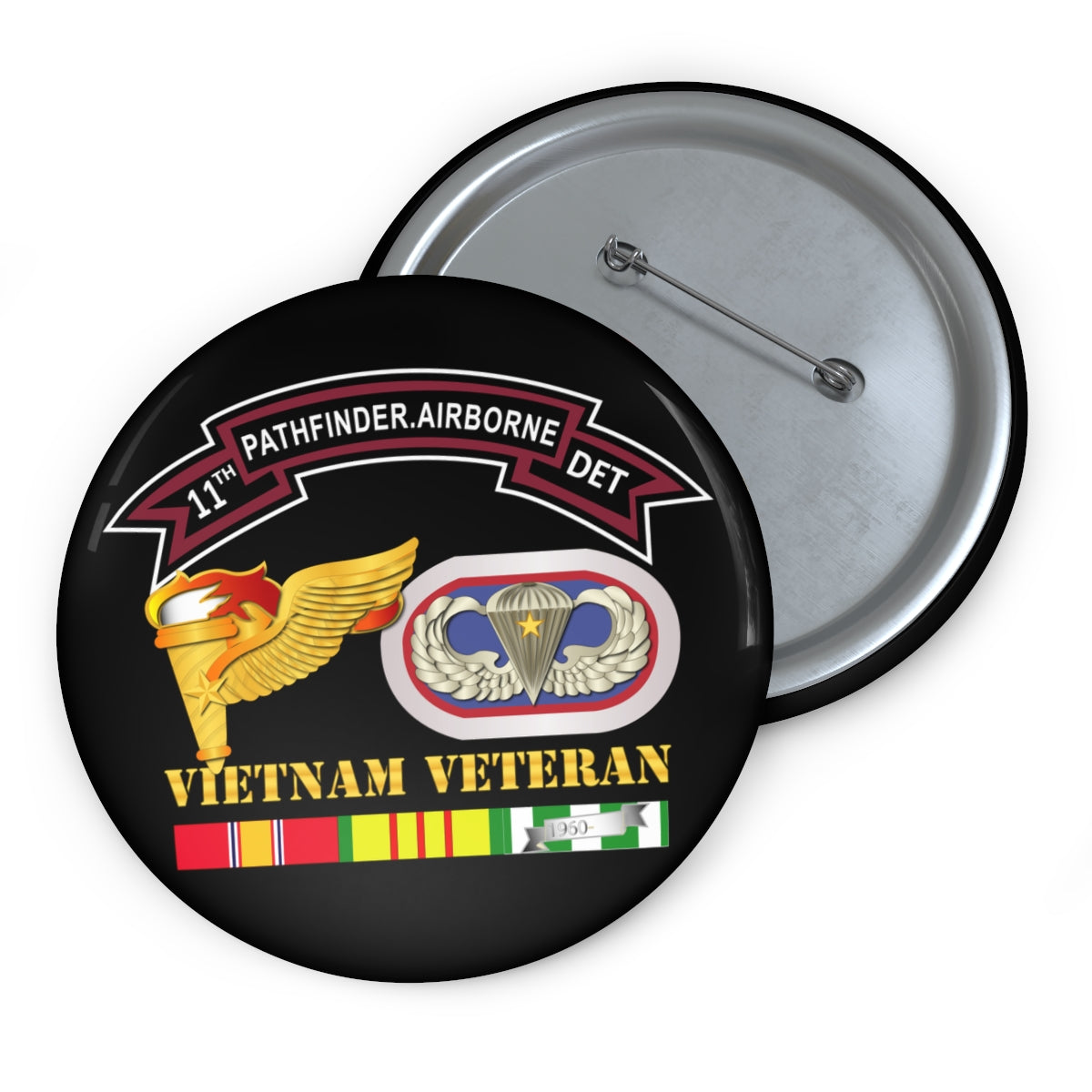 The 11th Pathfinder Detachment – Vietnam Veteran designation, featuring an Airborne Badge with a Combat Star and a Pathfinder Badge, signifies service in the elite pathfinder unit during the Vietnam War. These soldiers were responsible for reconnaissance, marking drop zones, and guiding airborne and air assault operations in combat zones.