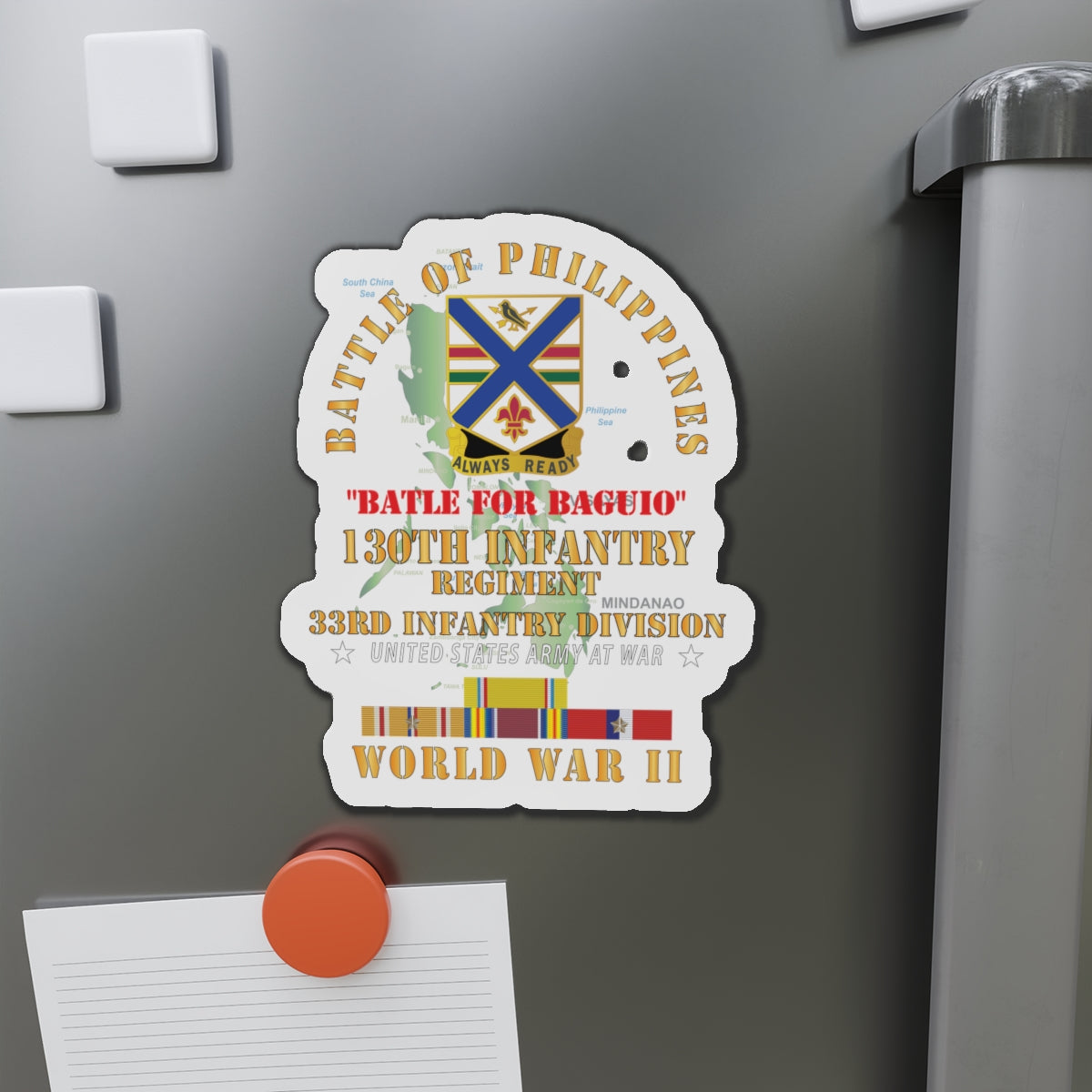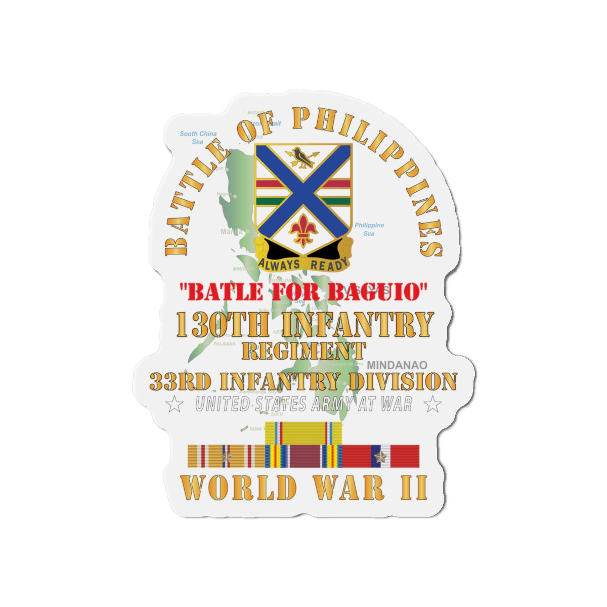 Die-Cut Magnets - Army - Battle for Philippines - 130th Infantry Regiment - 33rd Infantry Division w PAC - PHIL SVC X 300