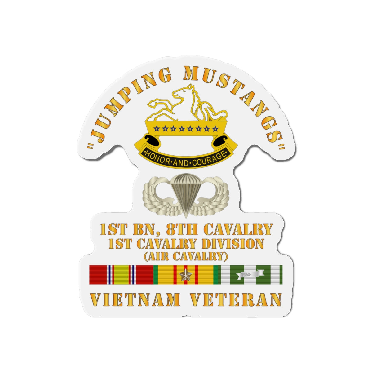 Die-Cut Magnets - Army - Jumping Mustangs w DUI - ABN Basic - 1st Bn 8th Cav w VN SVC