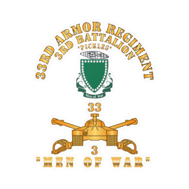 Kiss-Cut Vinyl Decals - Army - 3rd Bn 33rd Armor Branch w 33rd Armor PICKLES DUI - MEN OF WAR - Hat X 300