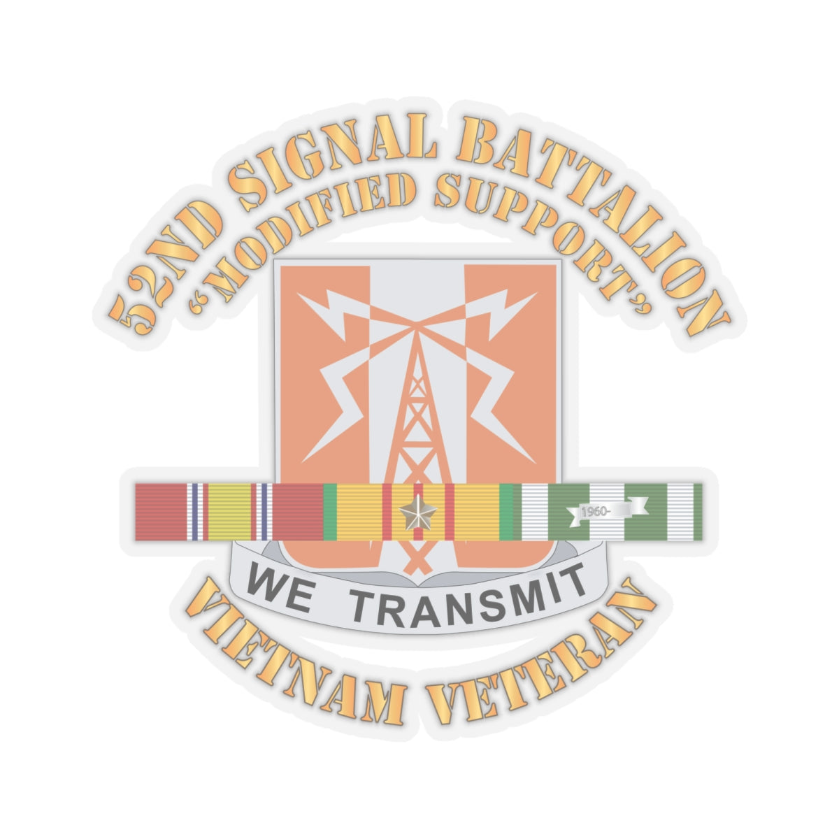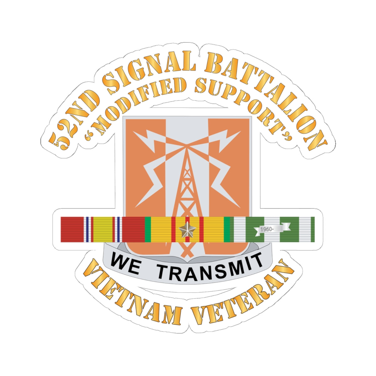 Kiss-Cut Stickers - 52nd Signal Battalion (Modified Support) w SVC Ribbon X 300