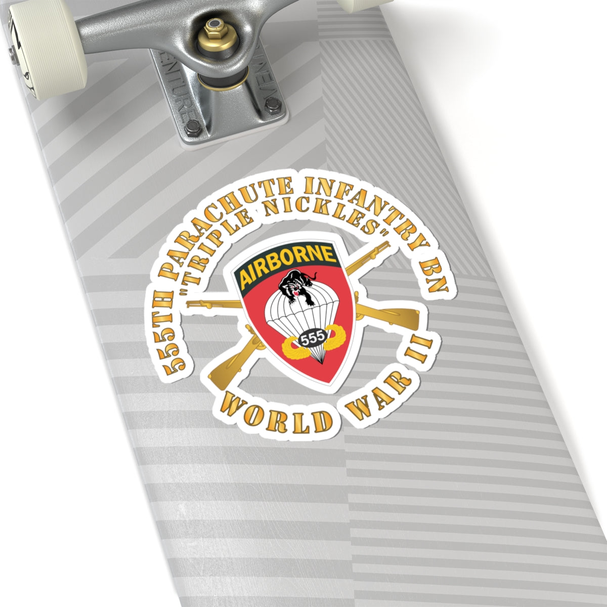 Kiss-Cut Stickers - Army - 555th Infantry Parachute Bn SSI - Triple Nickles - WWII w Br X 300