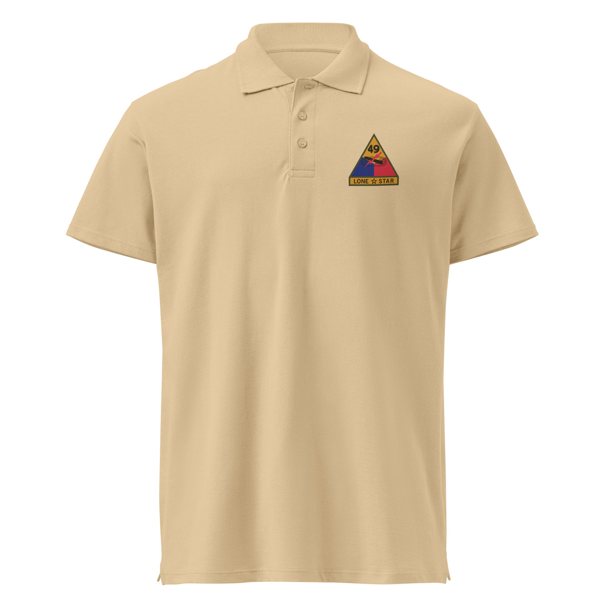 The 49th Armored Division insignia represents Texas's distinguished National Guard heritage and post-WWII military reorganization. Whether you served with the 49th, have family ties to the division, or honor Texas's military tradition, this personalized polo lets you wear your pride with authenticity and sophistication.