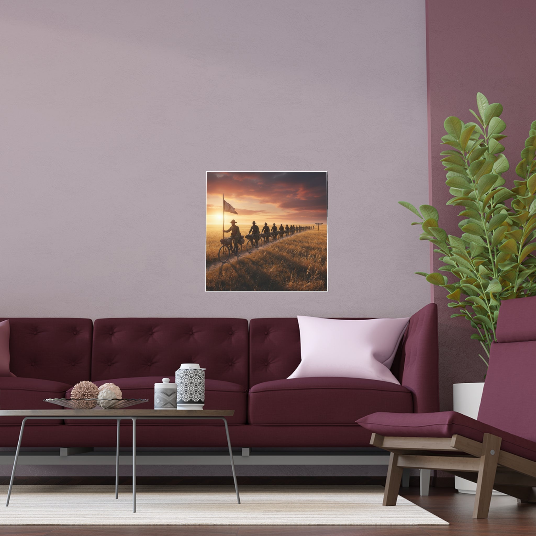 Indoor and Outdoor Silk Posters - E Company 25th Infantry Buffalo Soldiers Bicycle Corps with Guidon on the Prairie at Sunset