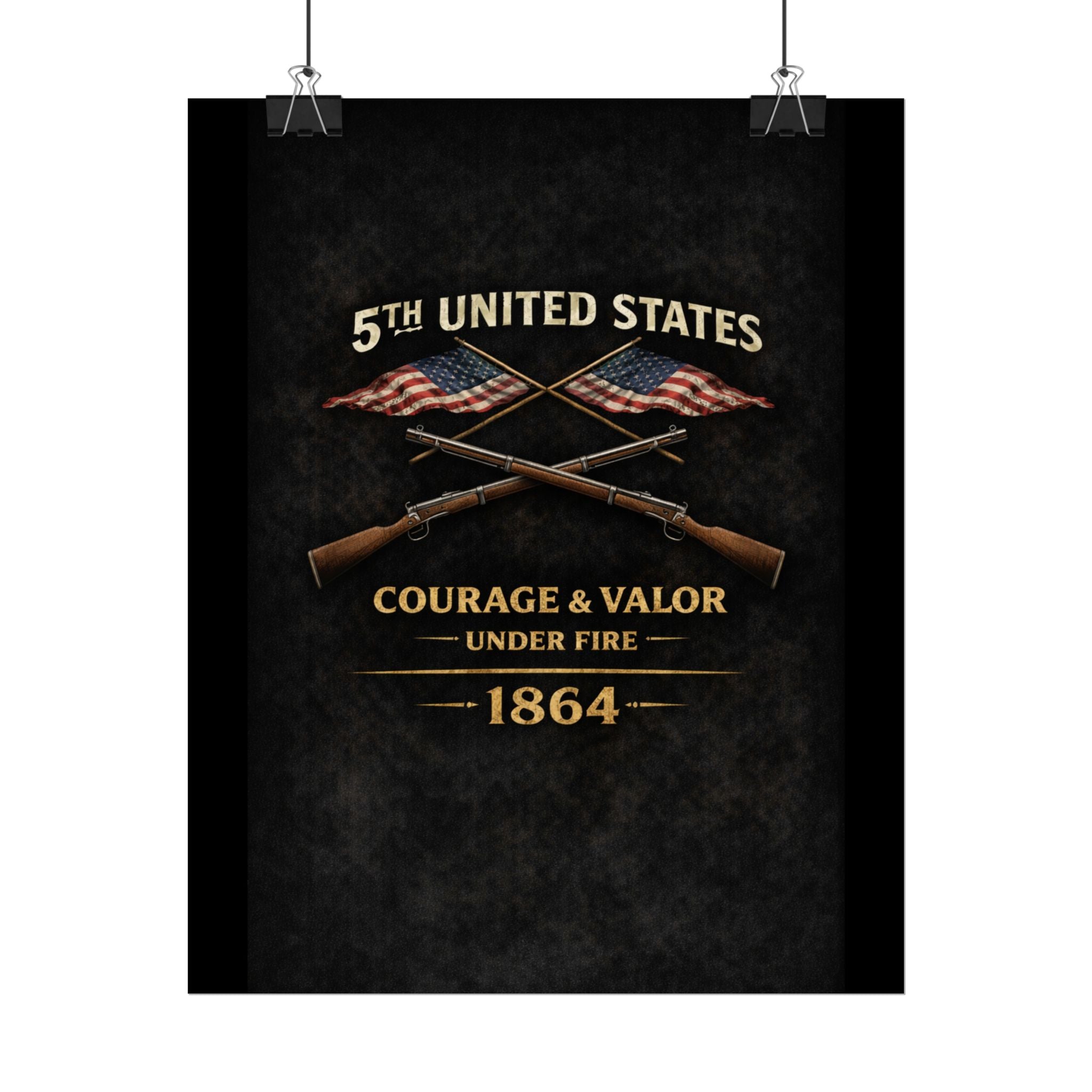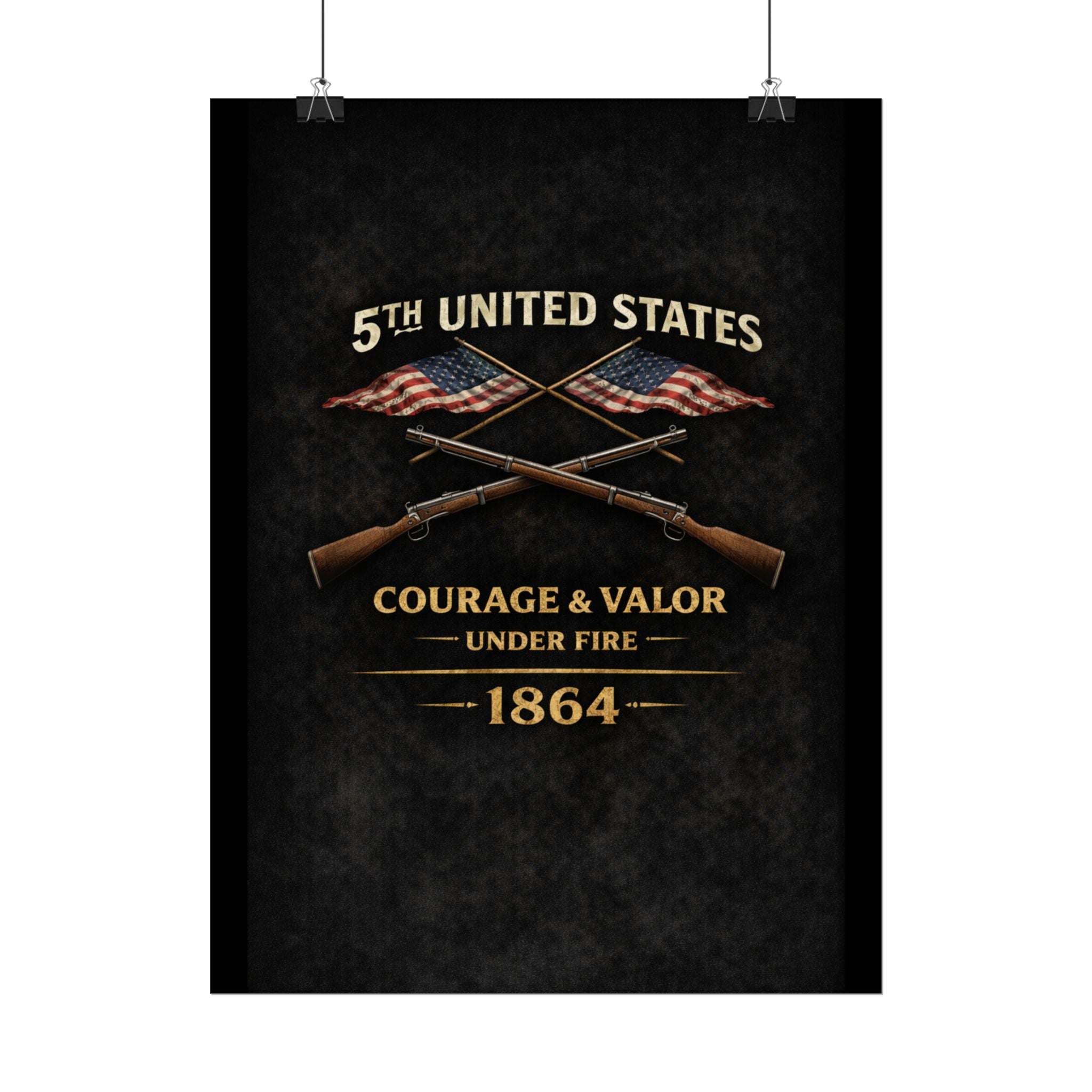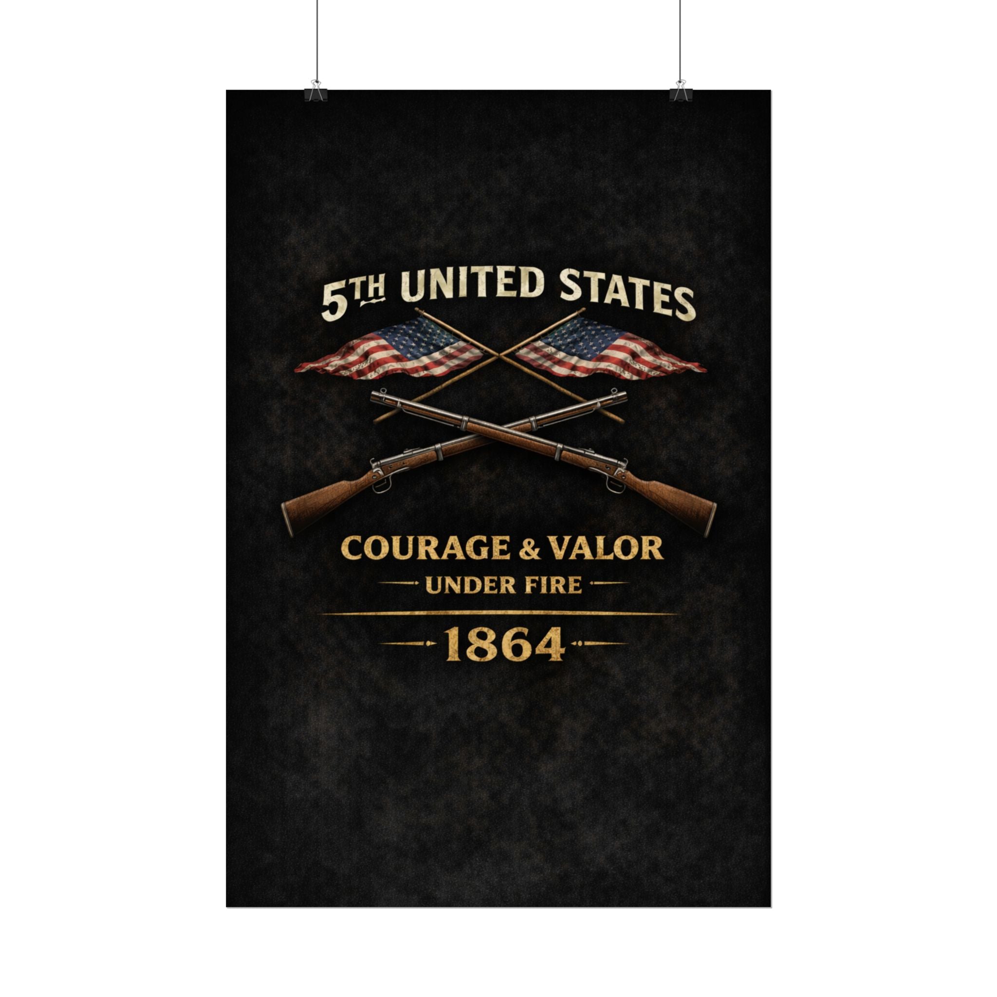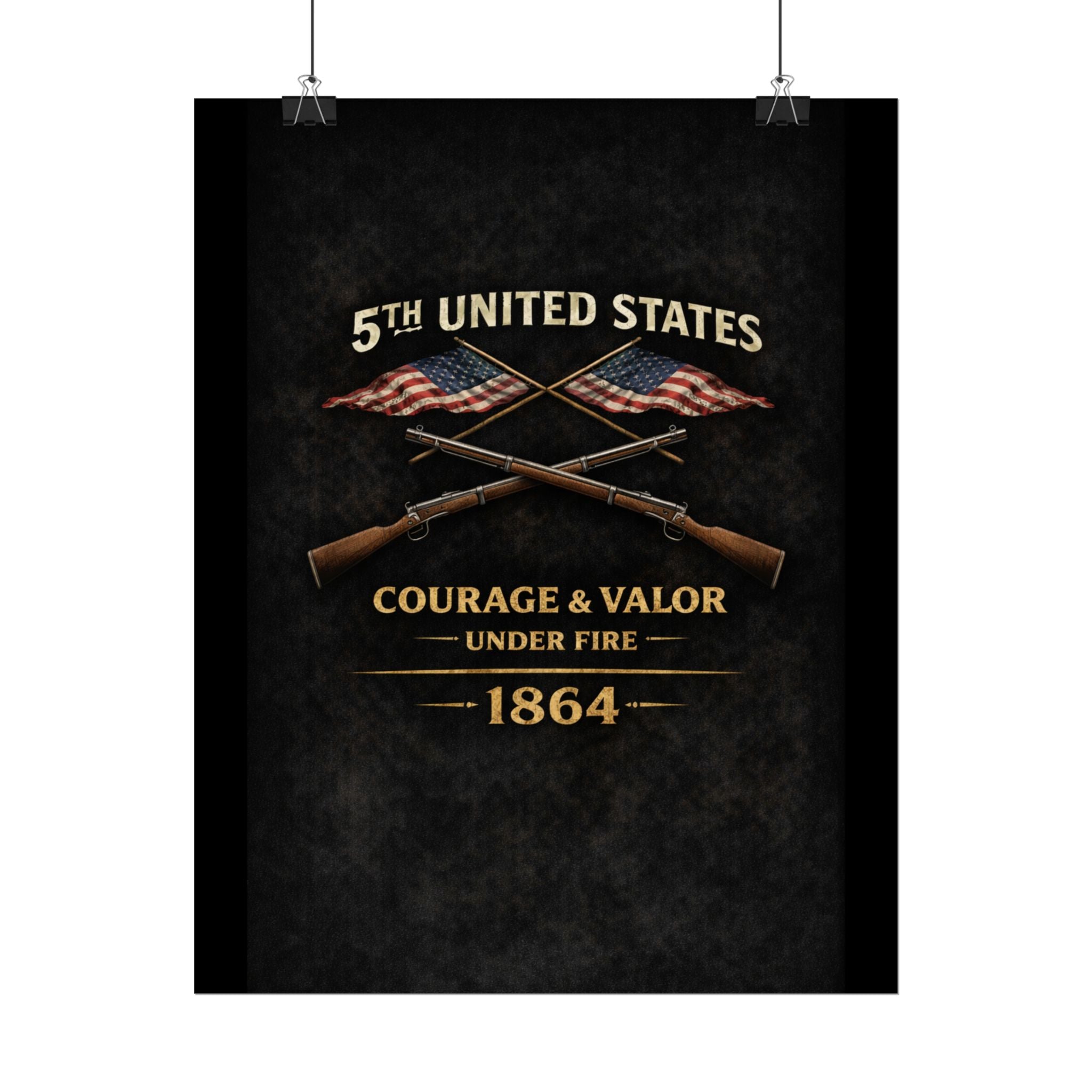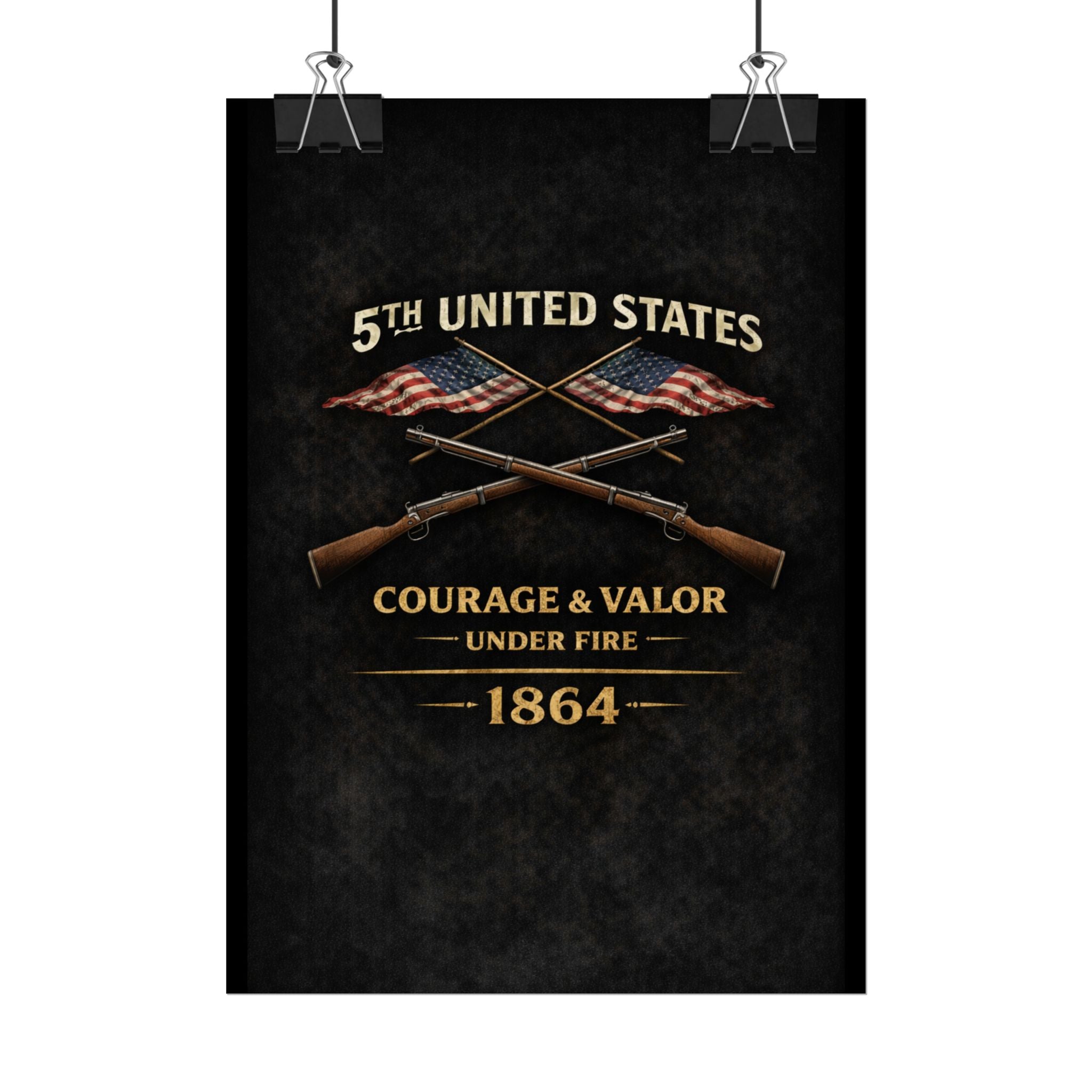 A museum-quality rolled art poster that honors the 5th United States Colored Troops (USCT), one of the distinguished African American regiments that served during the Civil War. Organized in 1863 in Ohio, the 5th USCT fought with valor throughout the war, including their heroic charge at New Market Heights in September 1864. Rendered in textured, timeworn tones, this print captures the dignity and determination of men who fought not only to preserve the Union, but to secure their own freedom and prove their worth as soldiers and citizens.