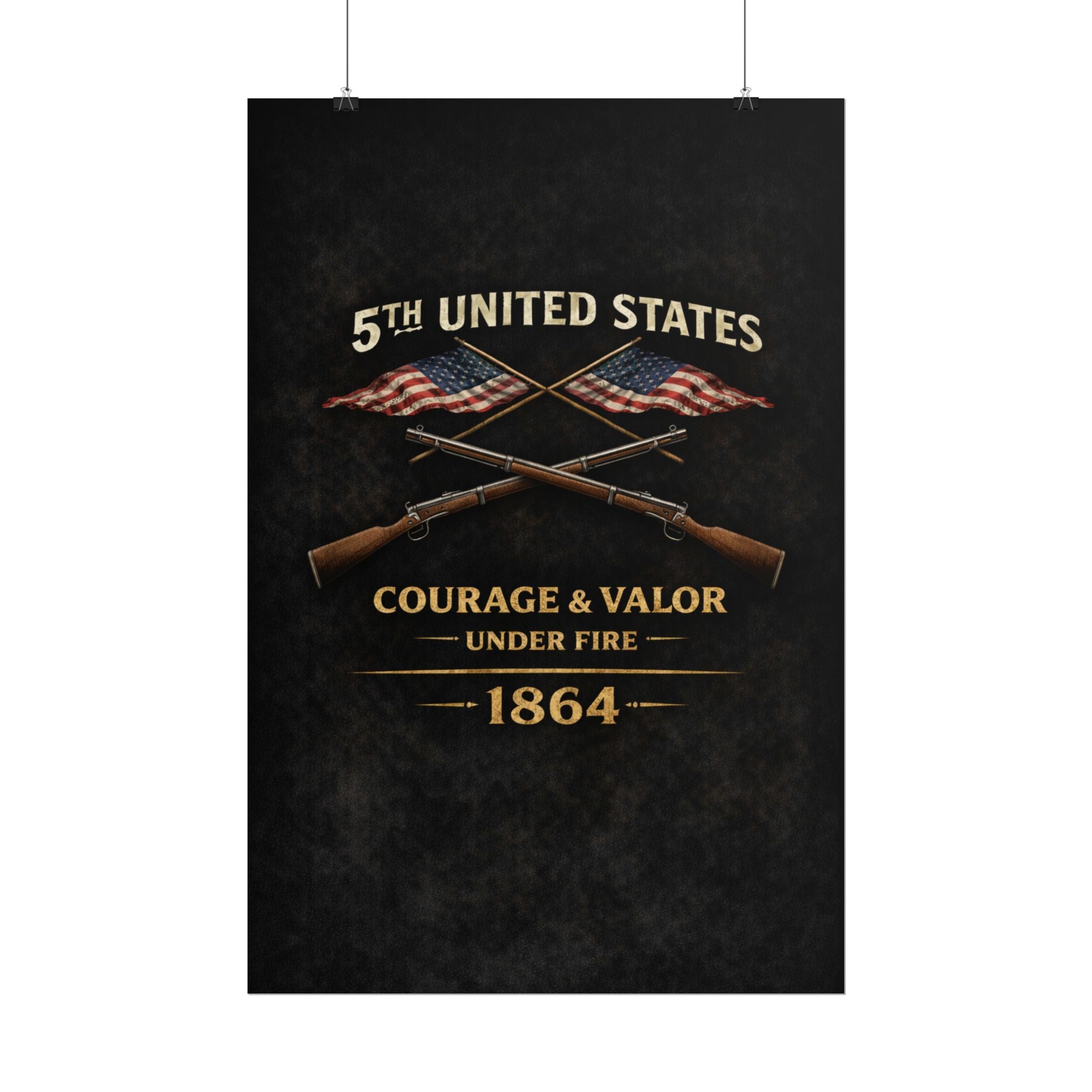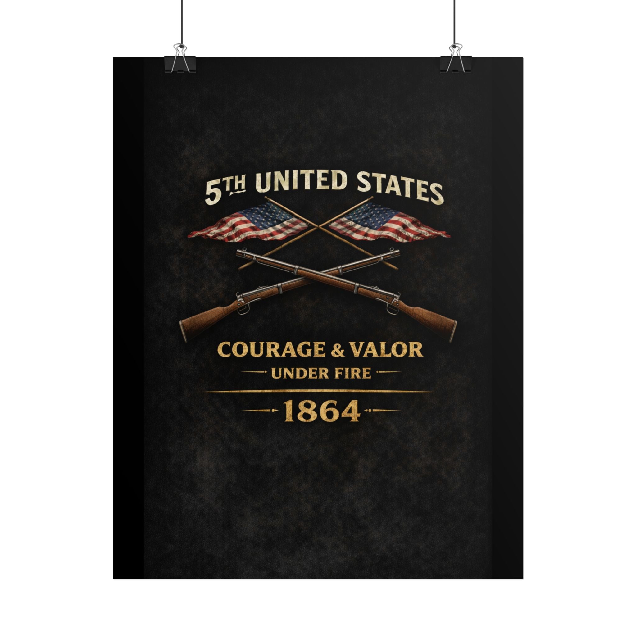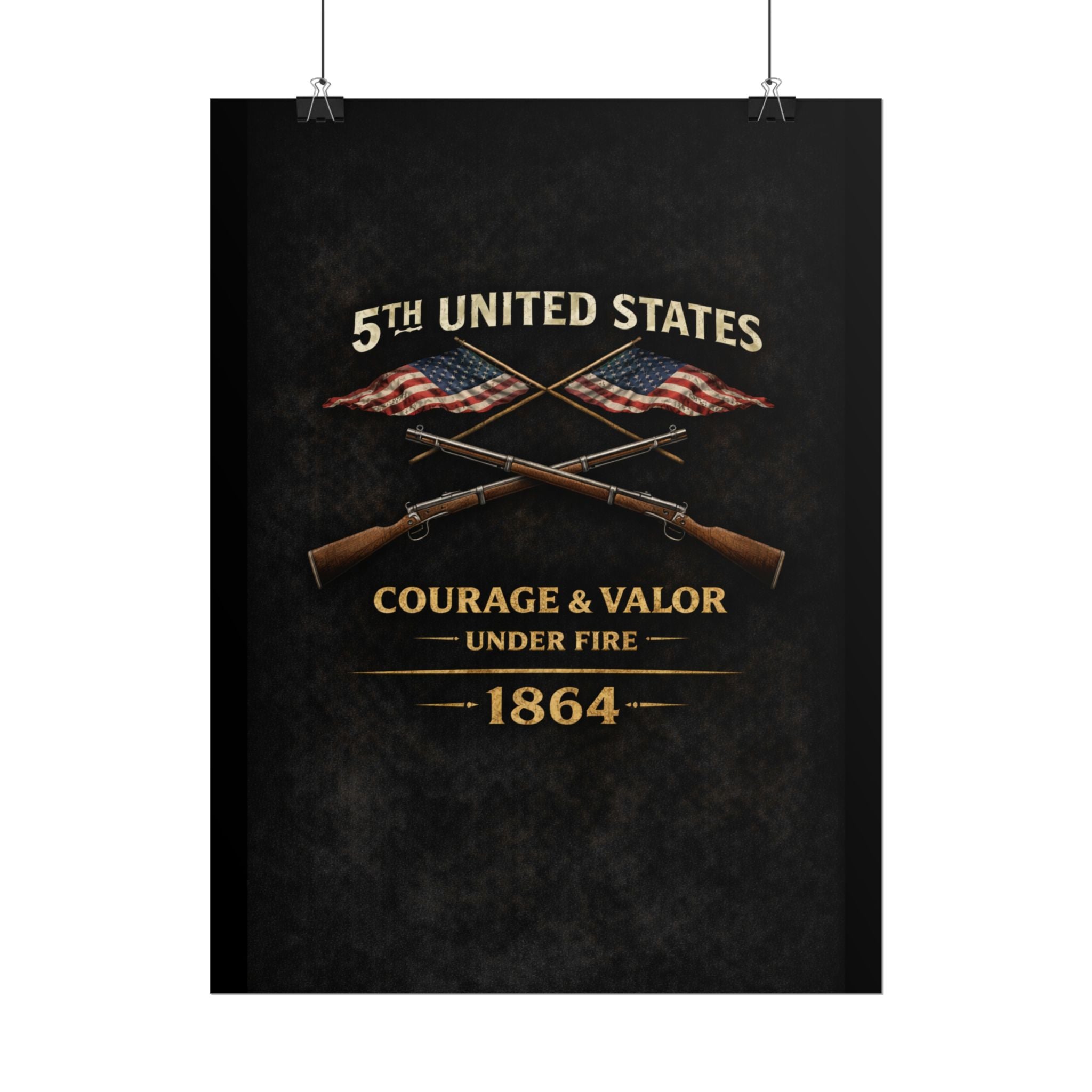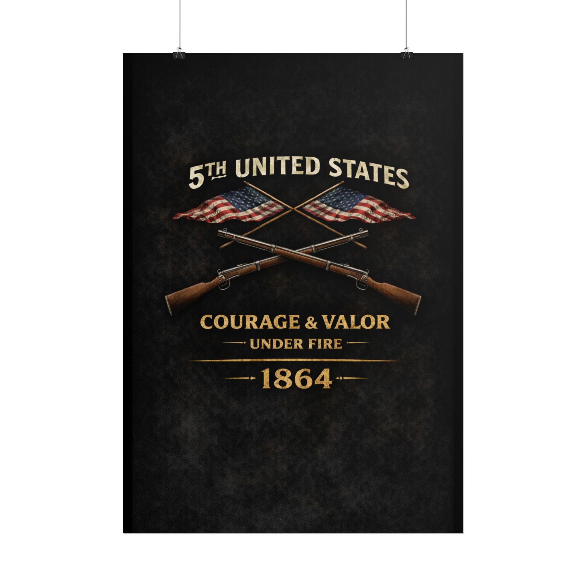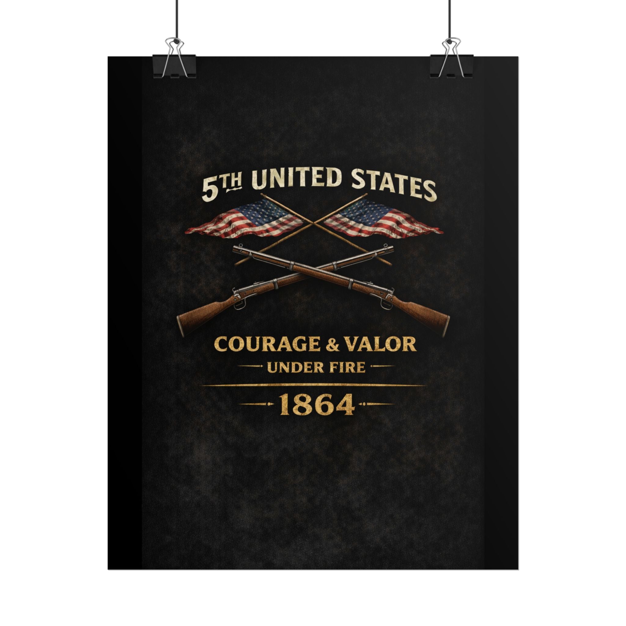 A museum-quality rolled art poster that honors the 5th United States Colored Troops (USCT), one of the distinguished African American regiments that served during the Civil War. Organized in 1863 in Ohio, the 5th USCT fought with valor throughout the war, including their heroic charge at New Market Heights in September 1864. Rendered in textured, timeworn tones, this print captures the dignity and determination of men who fought not only to preserve the Union, but to secure their own freedom and prove their worth as soldiers and citizens.