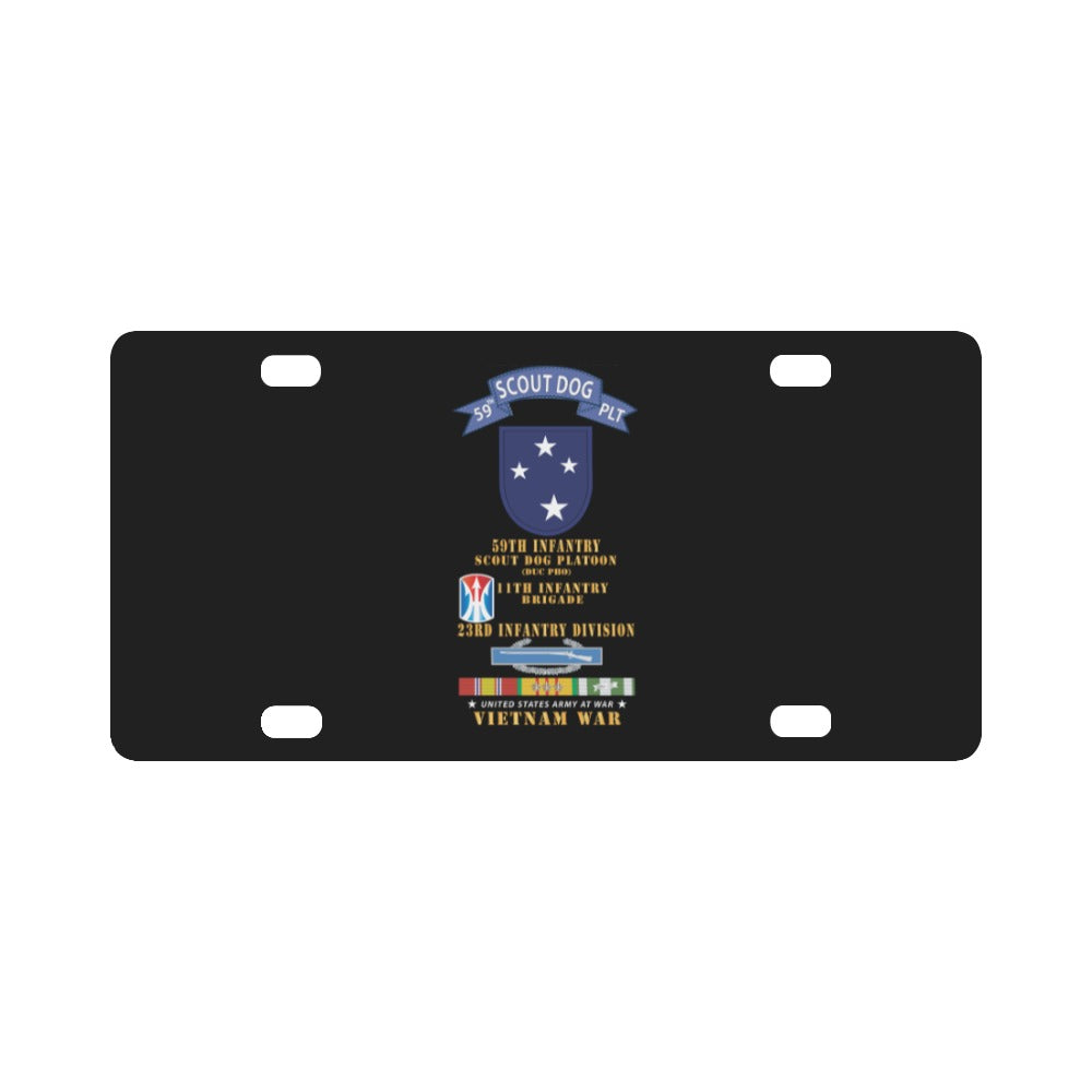 Army - 59th Infantry Scout Dog Platoon - Blue Tab, 11th Inf Bde, 23rd Inf Div - w CIB 3 Stars VN SVC Classic License Plate