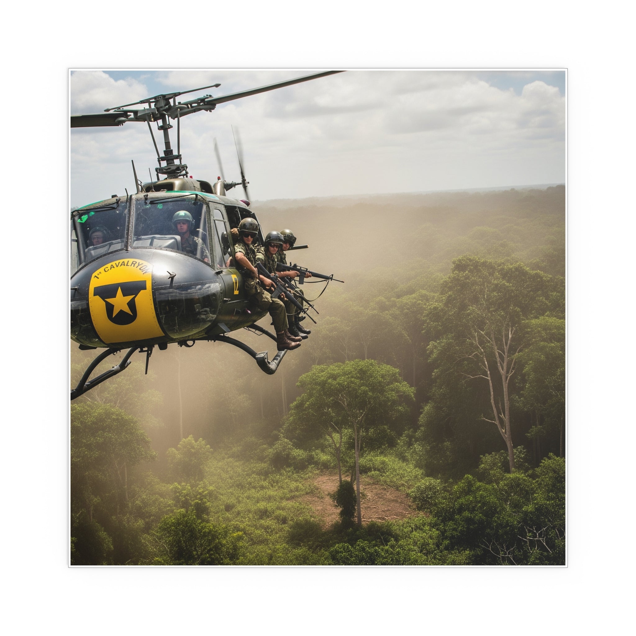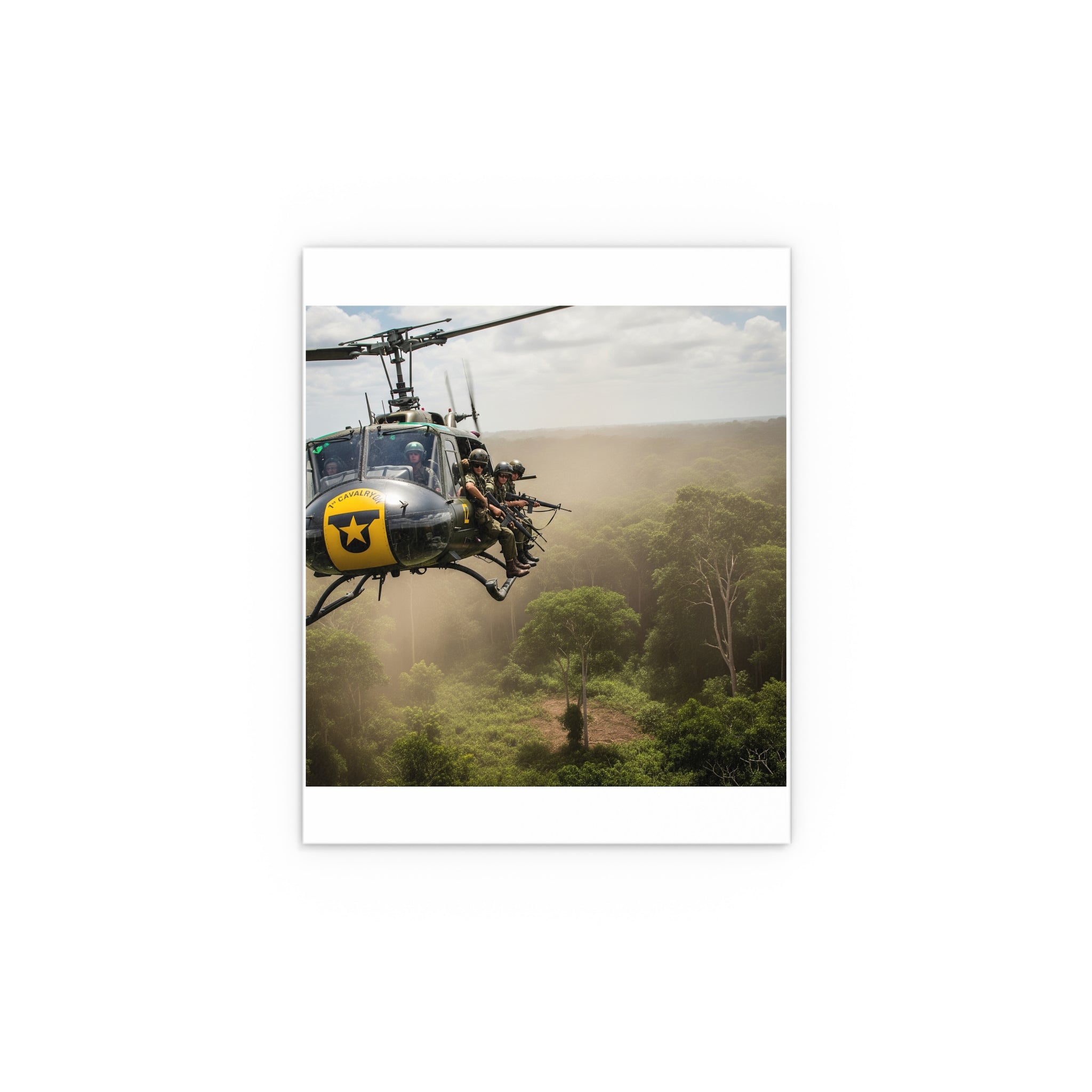 This silk-finish poster brings action and atmosphere into any room. A military helicopter hovers above a misty, tree-lined landscape — the image is crisp, color-rich and full of motion. The semi-gloss 200 gsm paper gives each print depth and a subtle sheen that keeps colors alive without glare. Waterproof and scratch-resistant, the poster stands up to damp outdoor porches as easily as it does a living room gallery wall. Choose from multiple sizes and orientations to suit a compact bedroom, a study wall, or an outdoor nook that needs a bold focal point. The result is a durable, high-impact print that feels lived-in and adventurous rather than fragile.