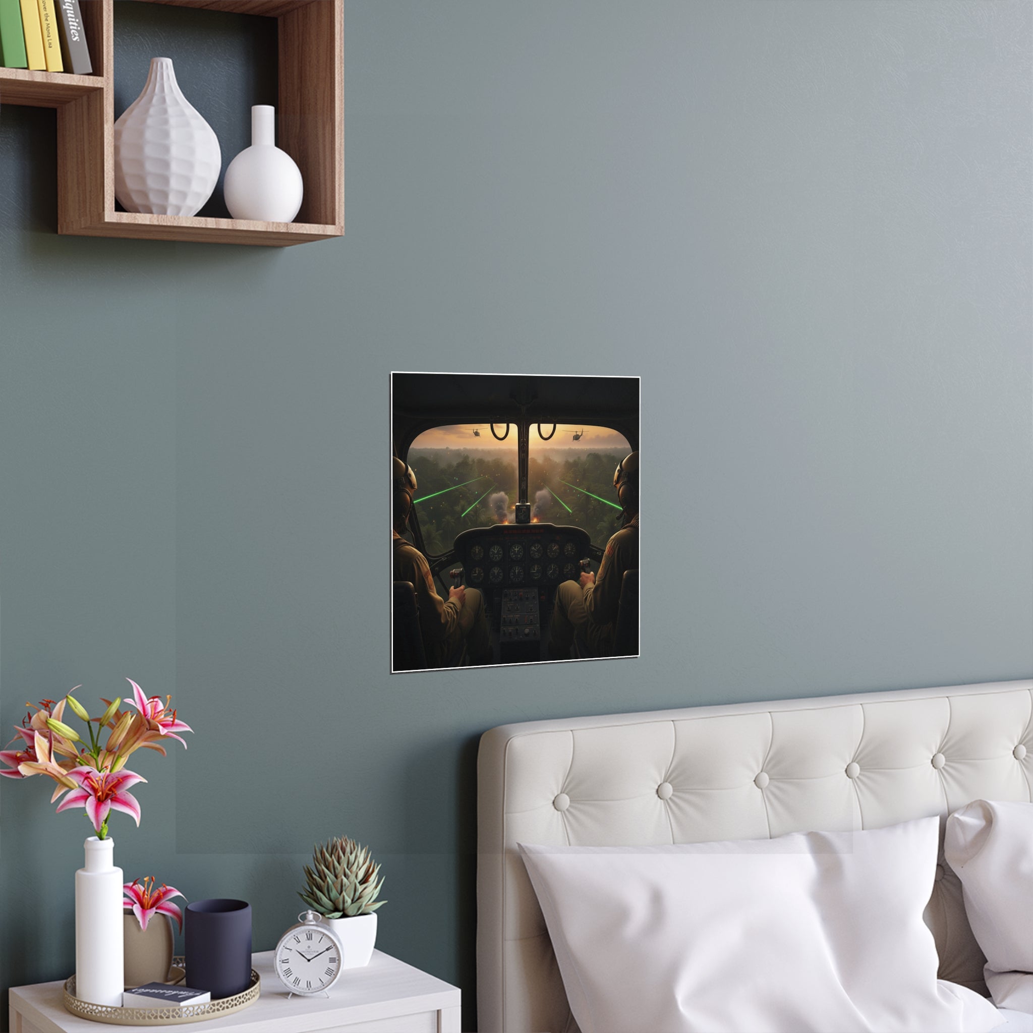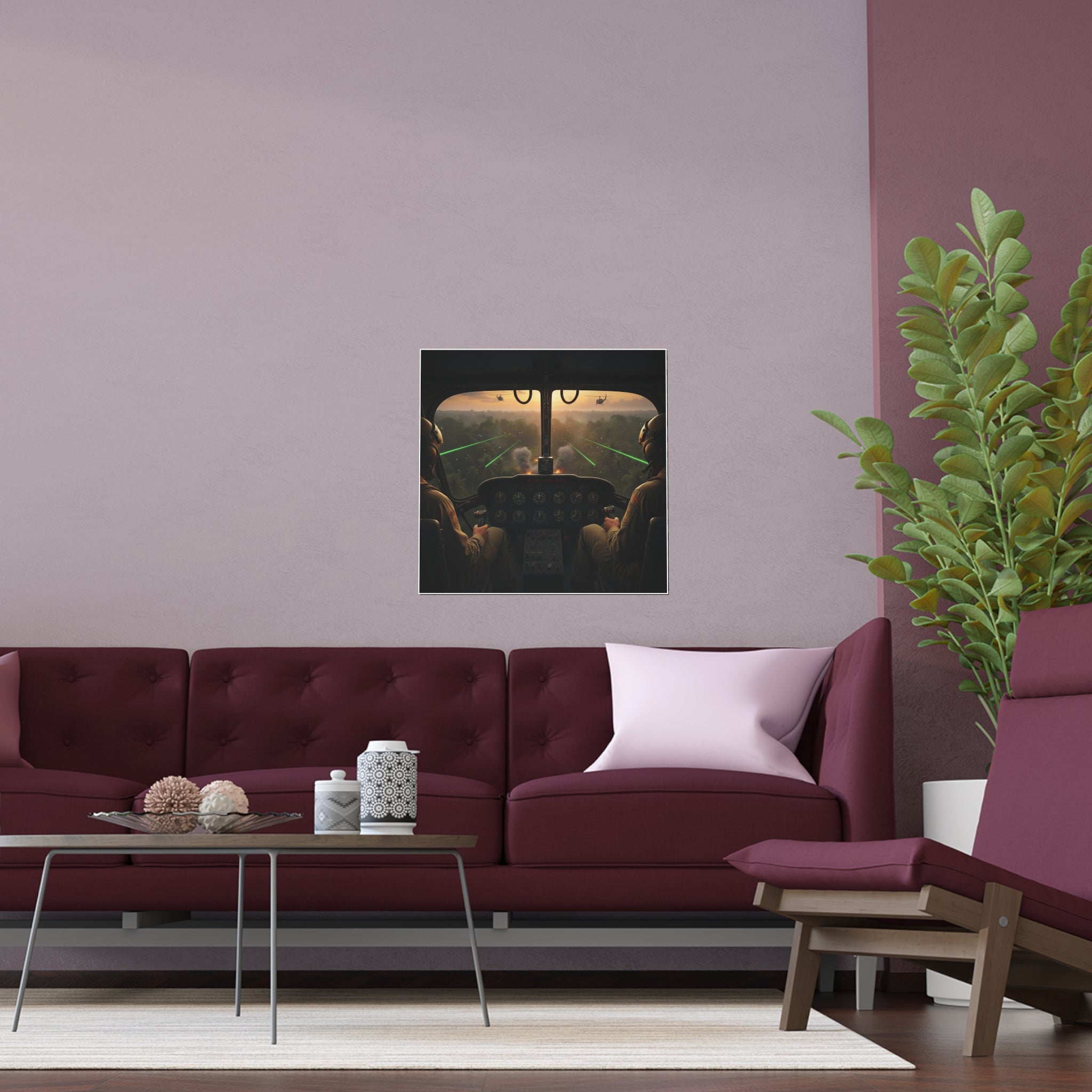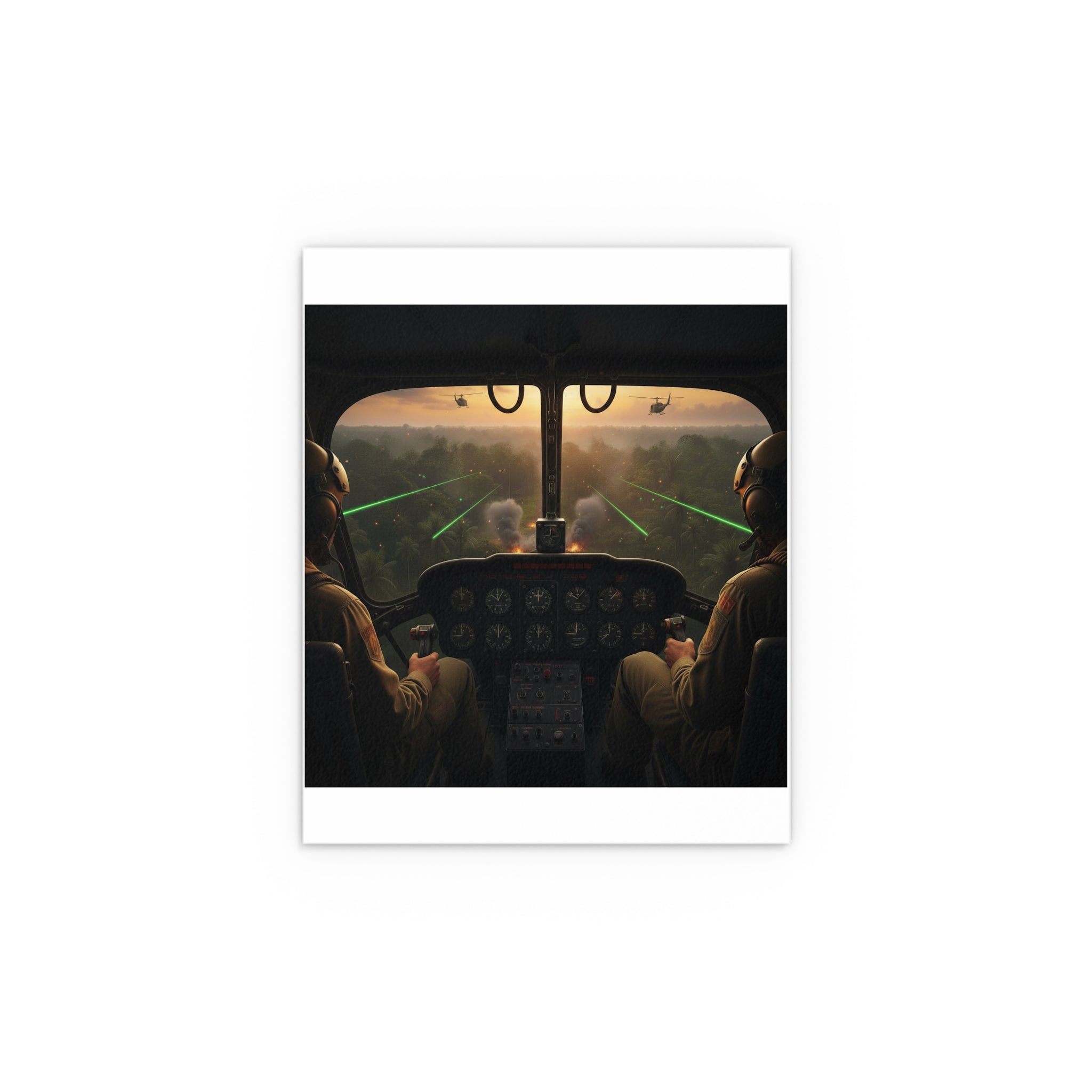 This silk-finish poster brings action and atmosphere into any room. A military helicopter hovers above a misty, tree-lined landscape — the image is crisp, color-rich and full of motion. The semi-gloss 200 gsm paper gives each print depth and a subtle sheen that keeps colors alive without glare. Waterproof and scratch-resistant, the poster stands up to damp outdoor porches as easily as it does a living room gallery wall. Choose from multiple sizes and orientations to suit a compact bedroom, a study wall, or an outdoor nook that needs a bold focal point. The result is a durable, high-impact print that feels lived-in and adventurous rather than fragile.