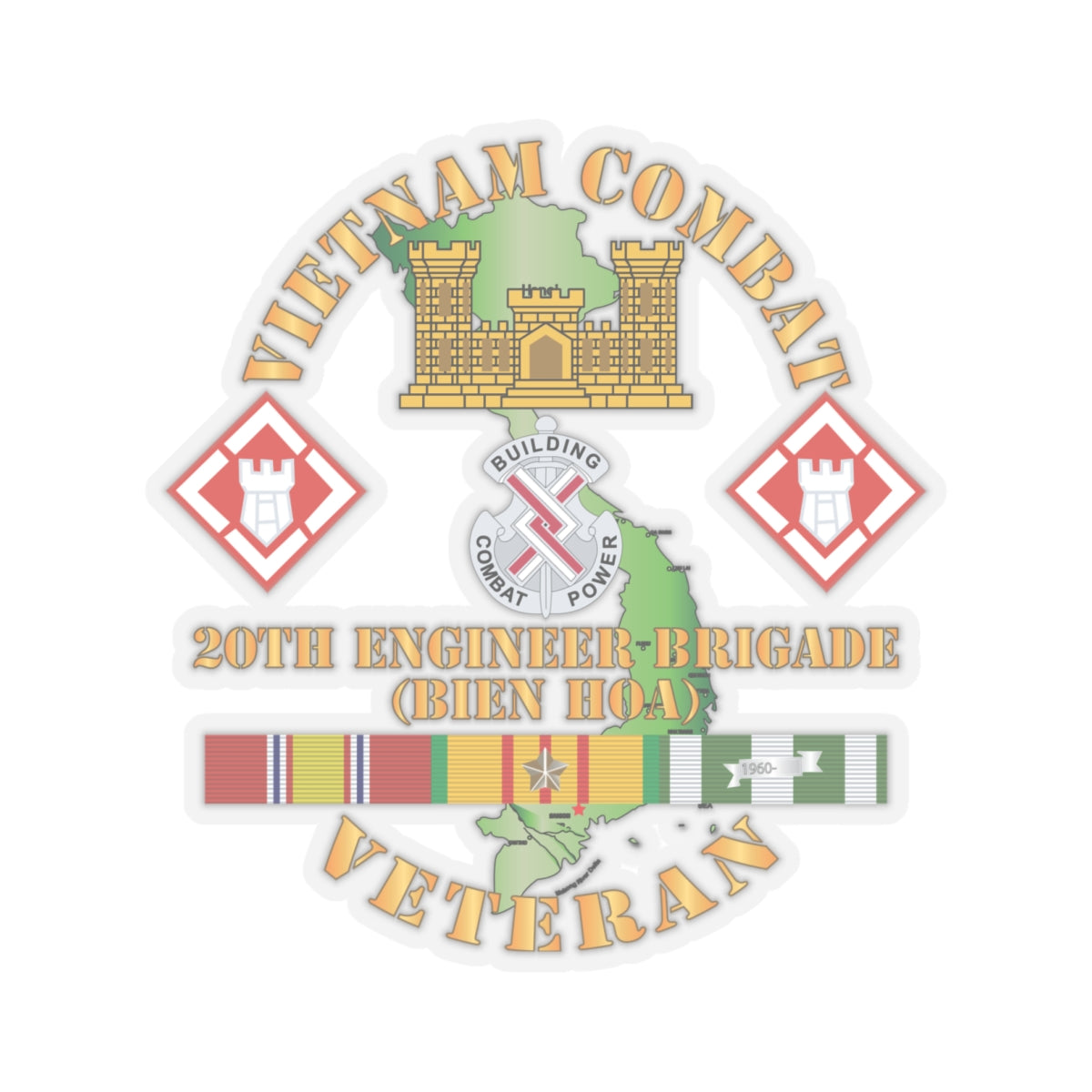 Kiss-Cut Stickers - Army - Vietnam Combat Veteran w 20th Engineer Brigade SSI - BIEN HOA X 300