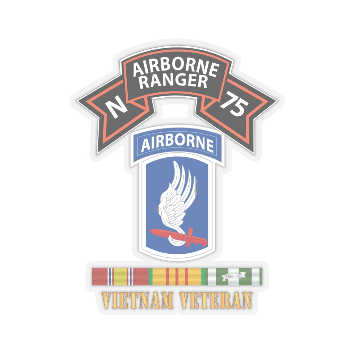 Kiss-Cut Stickers - SOF - N Company Scroll - 173rd Airborne Bde - Vietnam Veteran w VN SVC