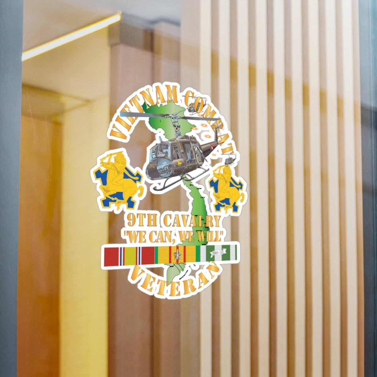 Kiss-Cut Vinyl Decals - Army - Vietnam Combat Cavalry Veteran w 9th Cav Helicopter X 300