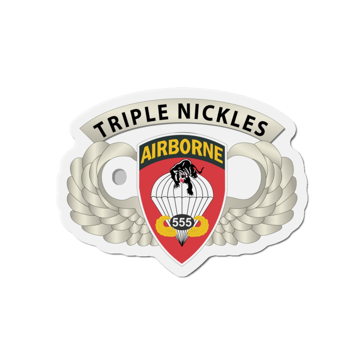 The "Triple Nickles" was the nickname of the 555th Parachute Infantry Battalion, the first all-black paratrooper unit in the U.S. Army during World War II. They earned their name from their numerical designation (555) and the three buffalo nickels that were part of the 92nd Infantry Division's insignia. The unit's history is marked by both its pioneering status as an African American airborne unit and its unique role in fighting forest fires in the Pacific Northwest during the war.