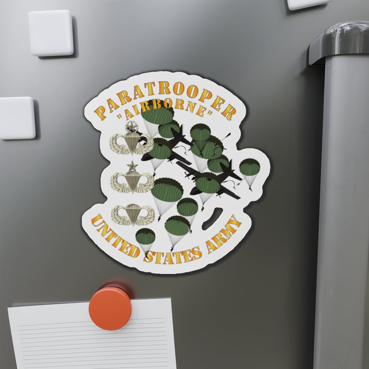 Die-Cut Magnets - Army - Paratrooper w 3 Airborne Badges - Mass Tac