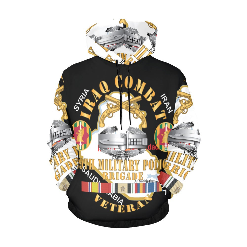 Men's All Over Print Hoodie (USA Size) (Model H13) - Army - 89th Military Police Brigade - Iraq Combat Veteran - SSI - CAB, Br w IRAQ SVC X 300