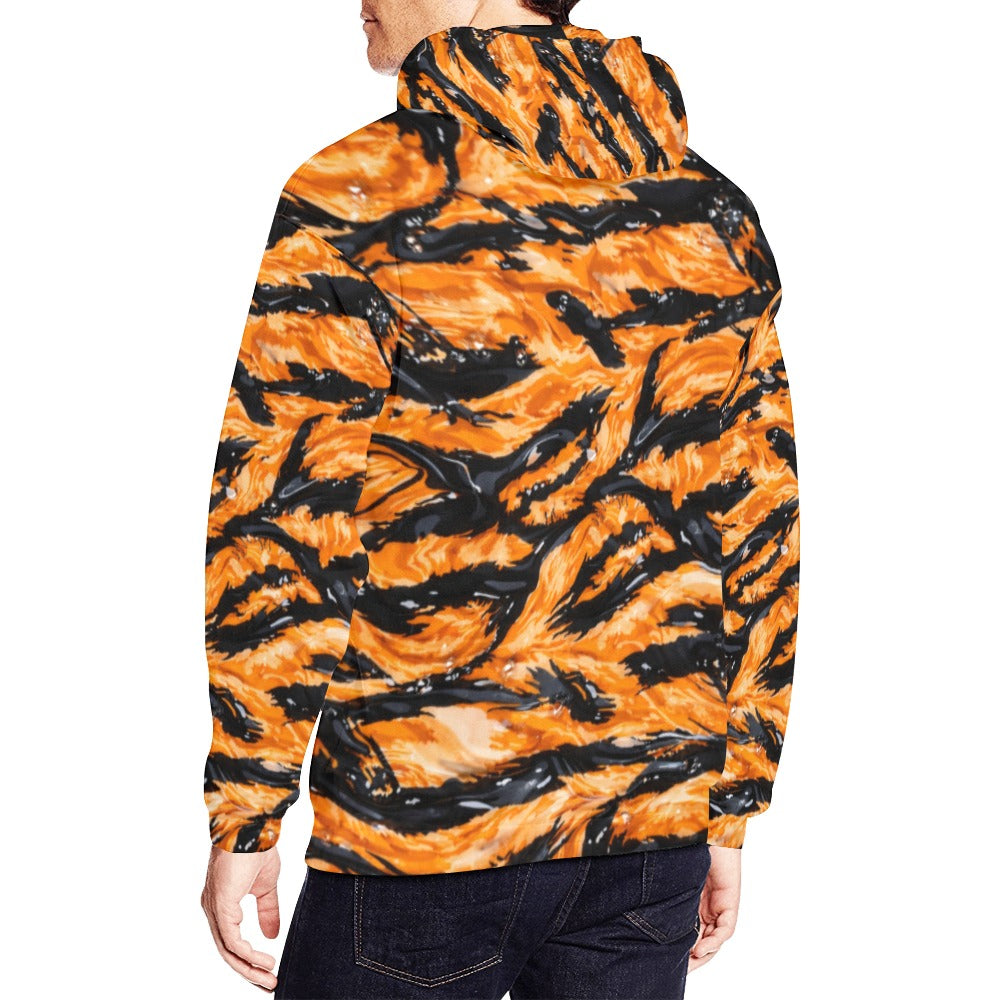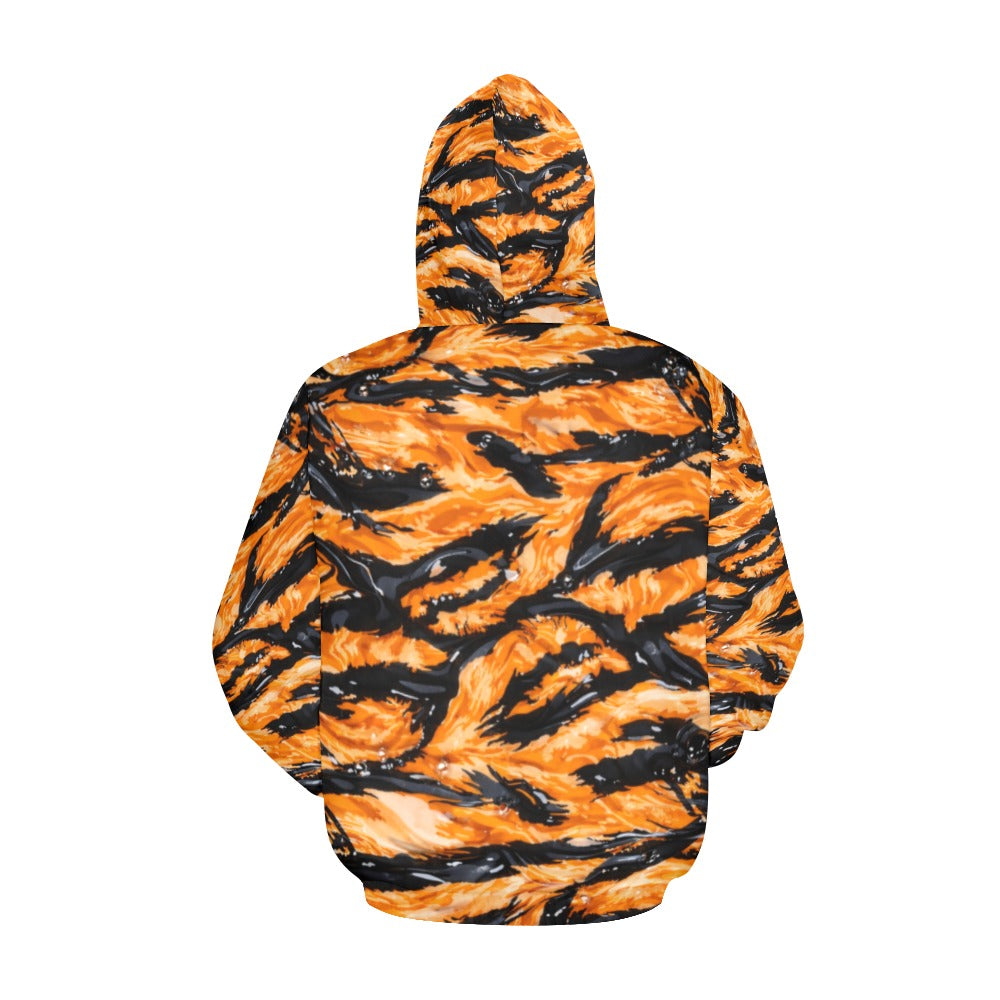 Honor the legacy of Vietnam-era tiger-stripe camouflage with this premium all-over print hoodie. Featuring authentic orange tiger-stripe hydrographic pattern, this piece combines historical accuracy with modern comfort and craftsmanship.