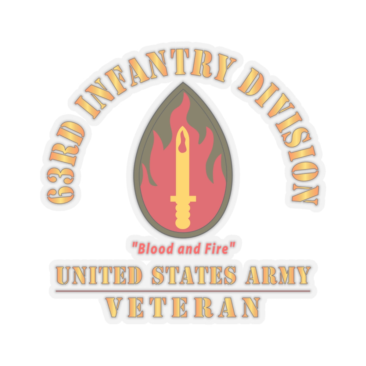 Kiss-Cut Stickers - Army - SSI - 63rd Infantry Division - Blood and Fire - US Army Veteran X 300