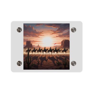 Acrylic Wall Art Panel - E Company 25th Infantry Buffalo Soldiers Bicycle Corps with Guidon on the Prairie at Sunset