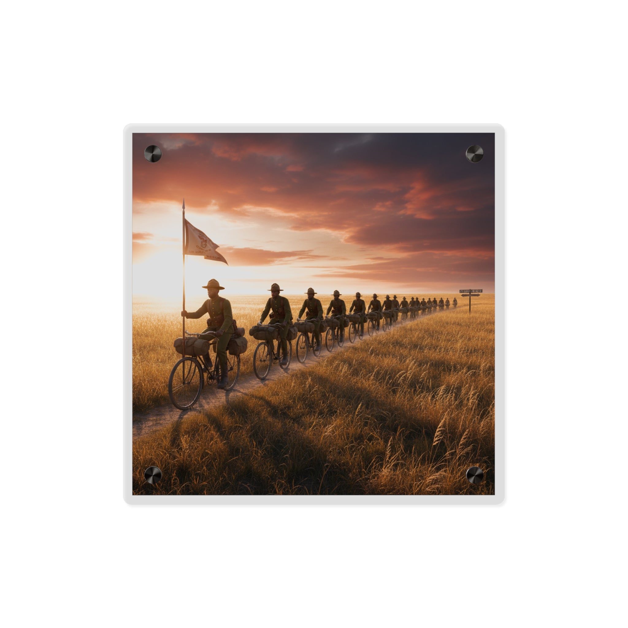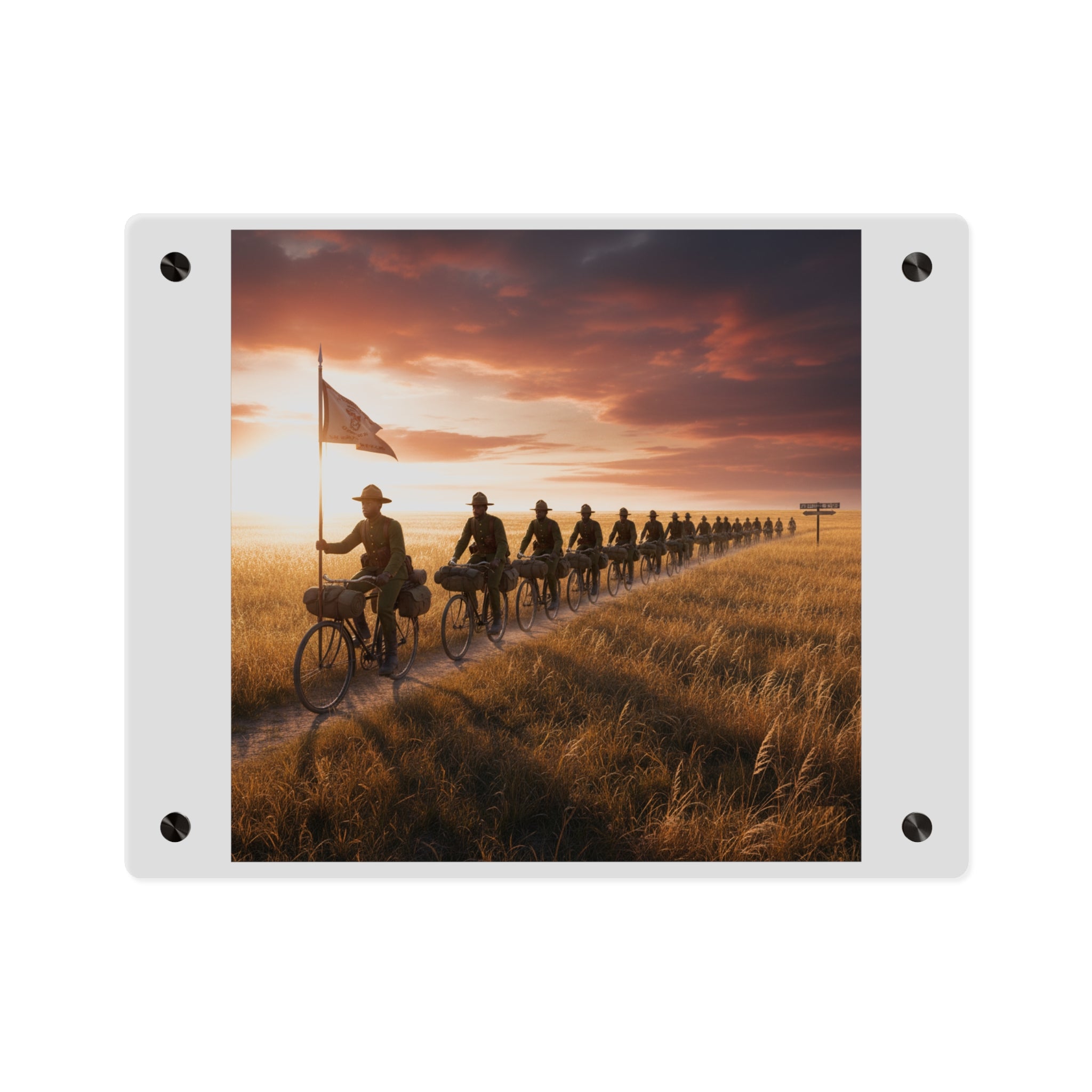 Acrylic Wall Art Panel - E Company 25th Infantry Buffalo Soldiers Bicycle Corps with Guidon on the Prairie at Sunset
