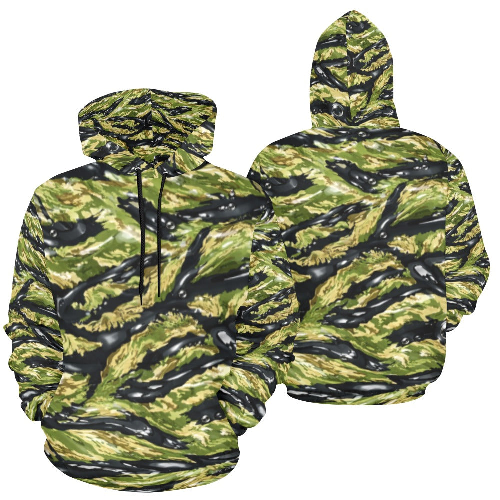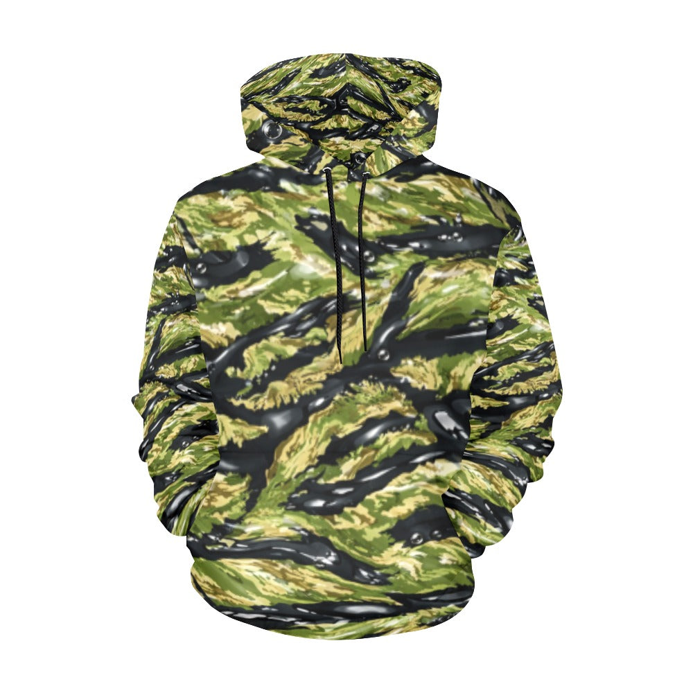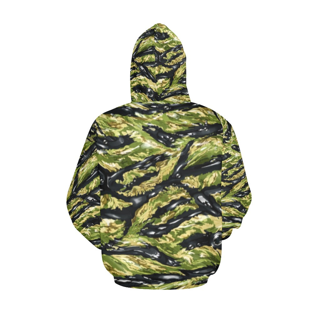 Honor the legacy of Vietnam-era elite forces with this premium all-over print hoodie. Featuring authentic orange tiger-stripe hydrographic camouflage—the iconic pattern worn by special operations and reconnaissance units during the Vietnam conflict—this piece delivers historical accuracy, modern comfort, and exceptional craftsmanship.