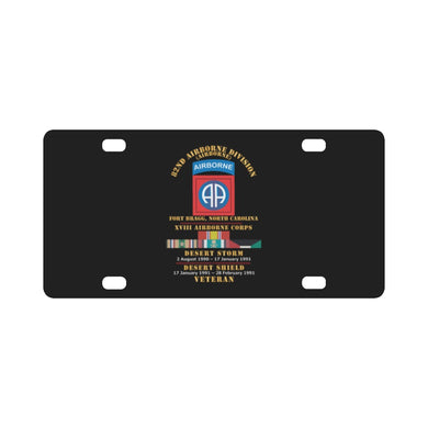 Army - 82nd Airborne Division - XVIII Airborne Corps - Desert Storm, Desert Shield Veteran X 300 Classic License Plate