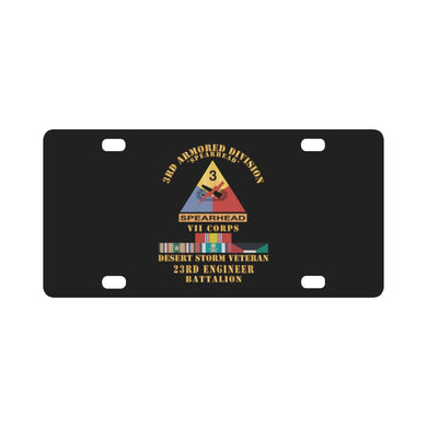 Army - 23rd Engineer Bn - 3rd Armored Div - VII Corps - Desert Storm Veteran X 300 Classic License Plate
