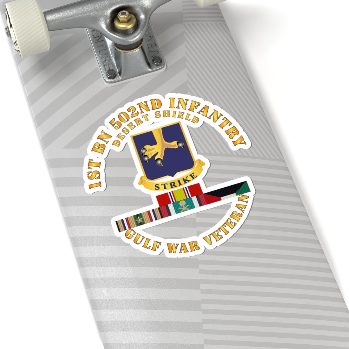 The 1st Battalion, 502nd Infantry Regiment participated in Operation Desert Shield, deploying to Saudi Arabia in late summer 1990 as part of the 2nd Brigade, 101st Airborne Division. The battalion's service history is part of the larger lineage of the 502nd Infantry Regiment, which traces its combat roots back to World War II with the D-Day landings in Normandy.