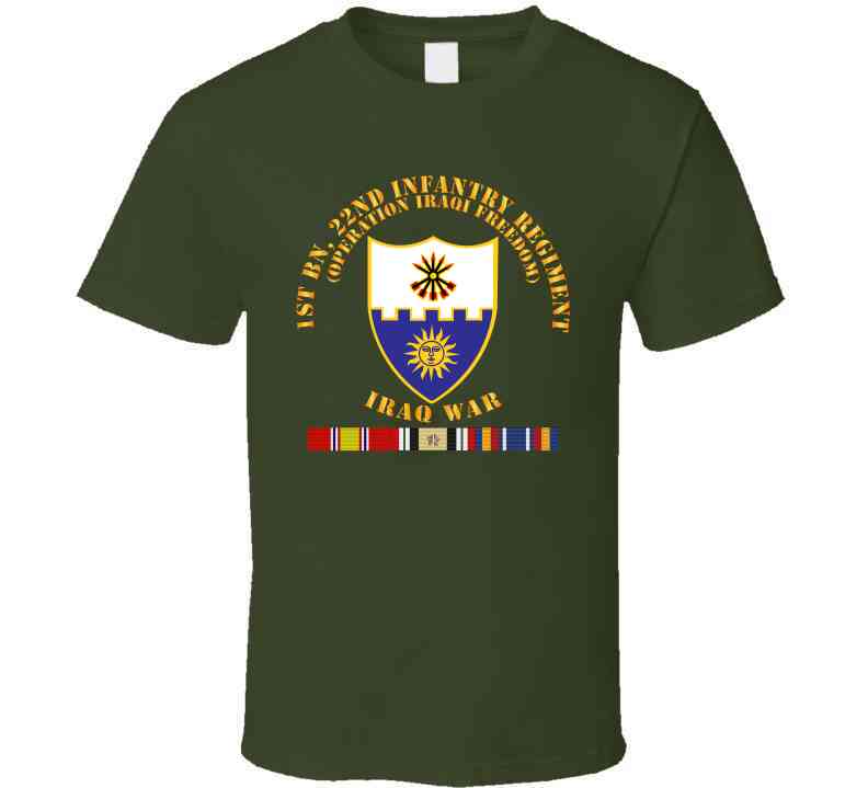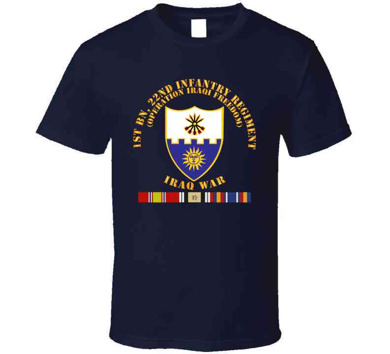 Army - 1st Bn 22nd Infantry - Oif1 - W Iraq Svc T Shirt, Various, Classic, Black