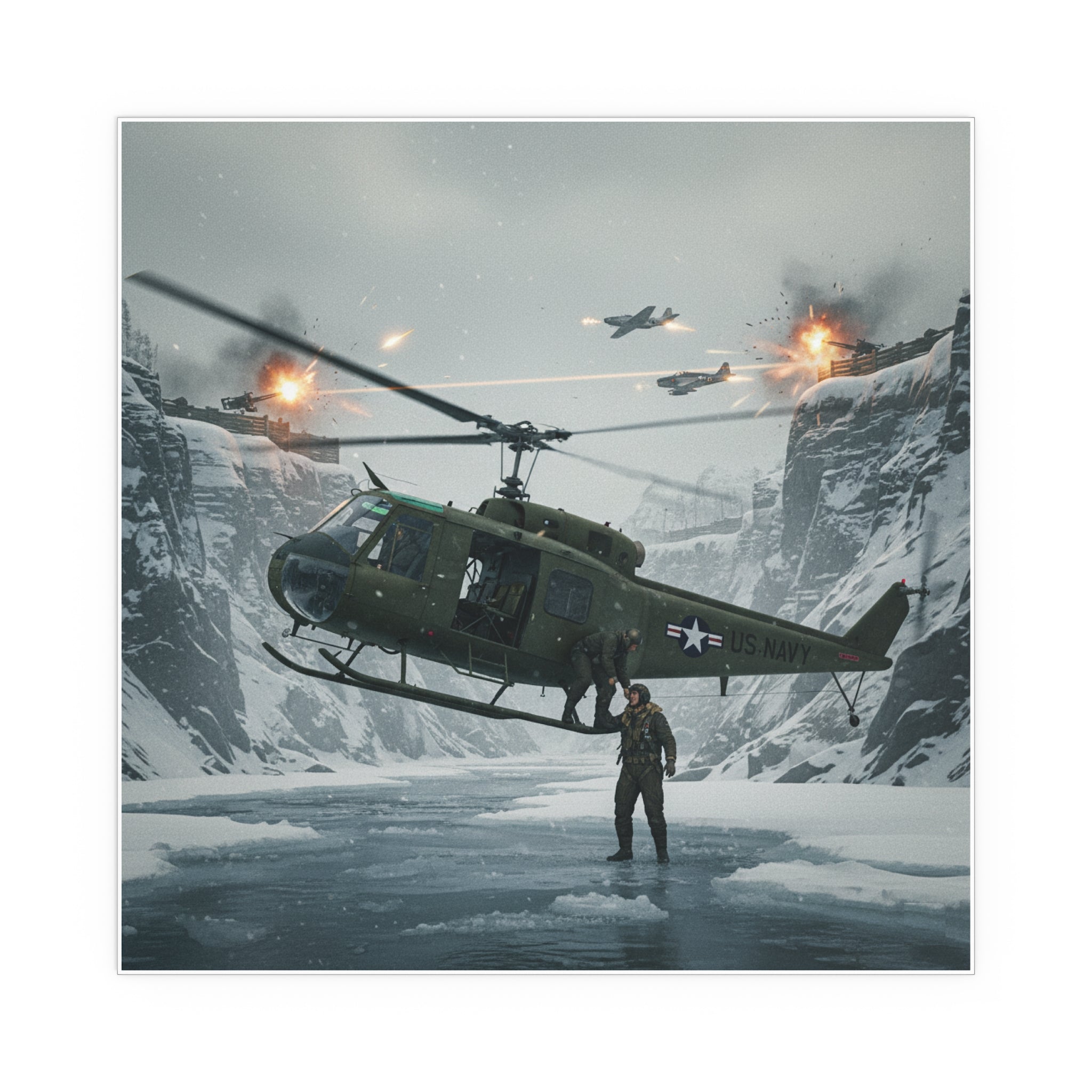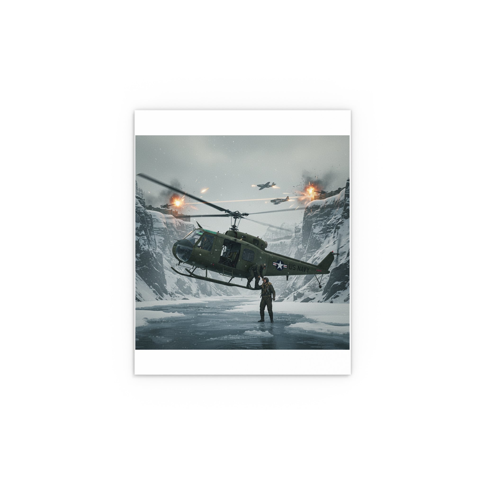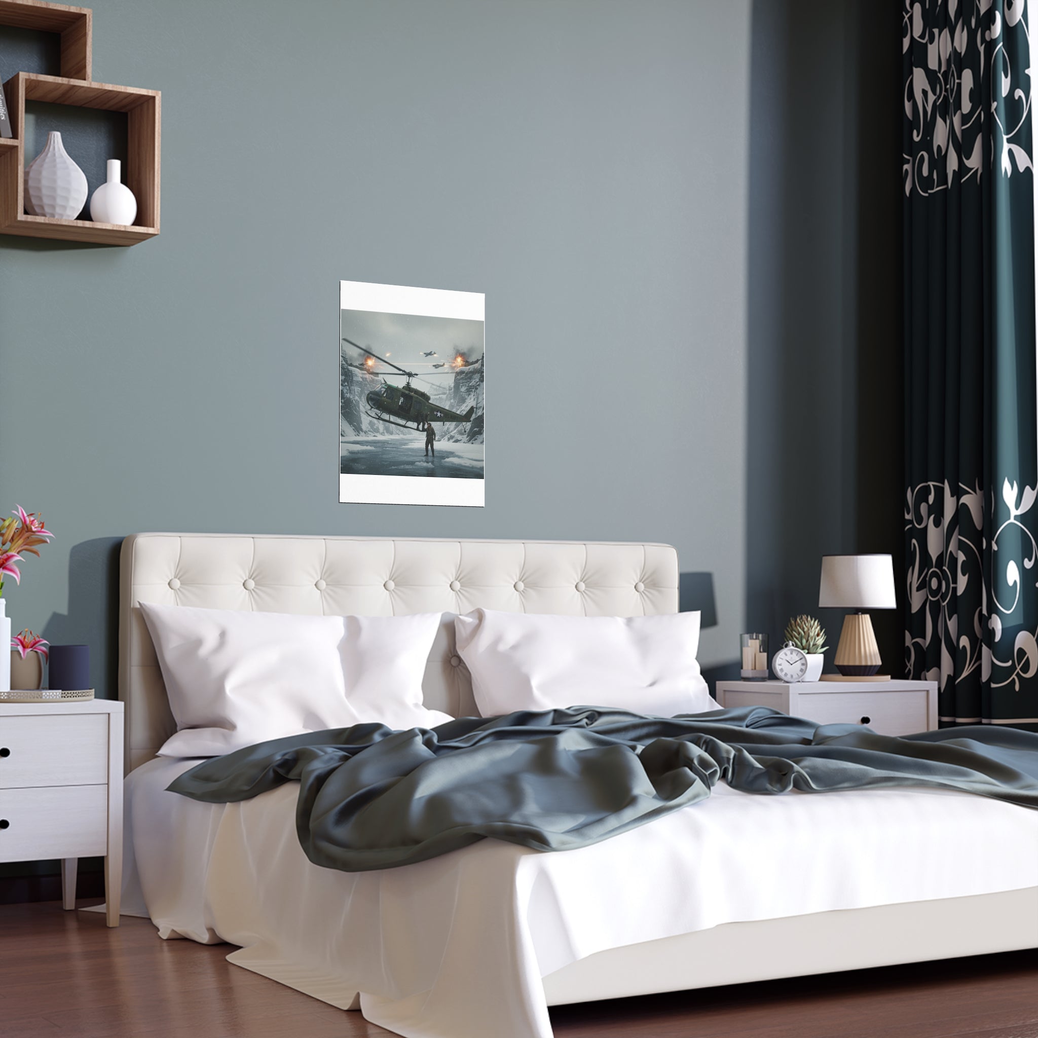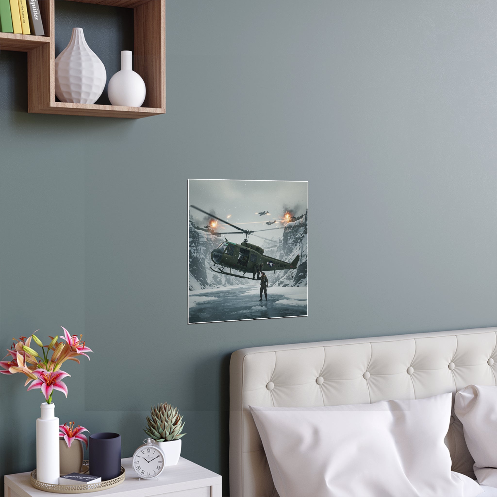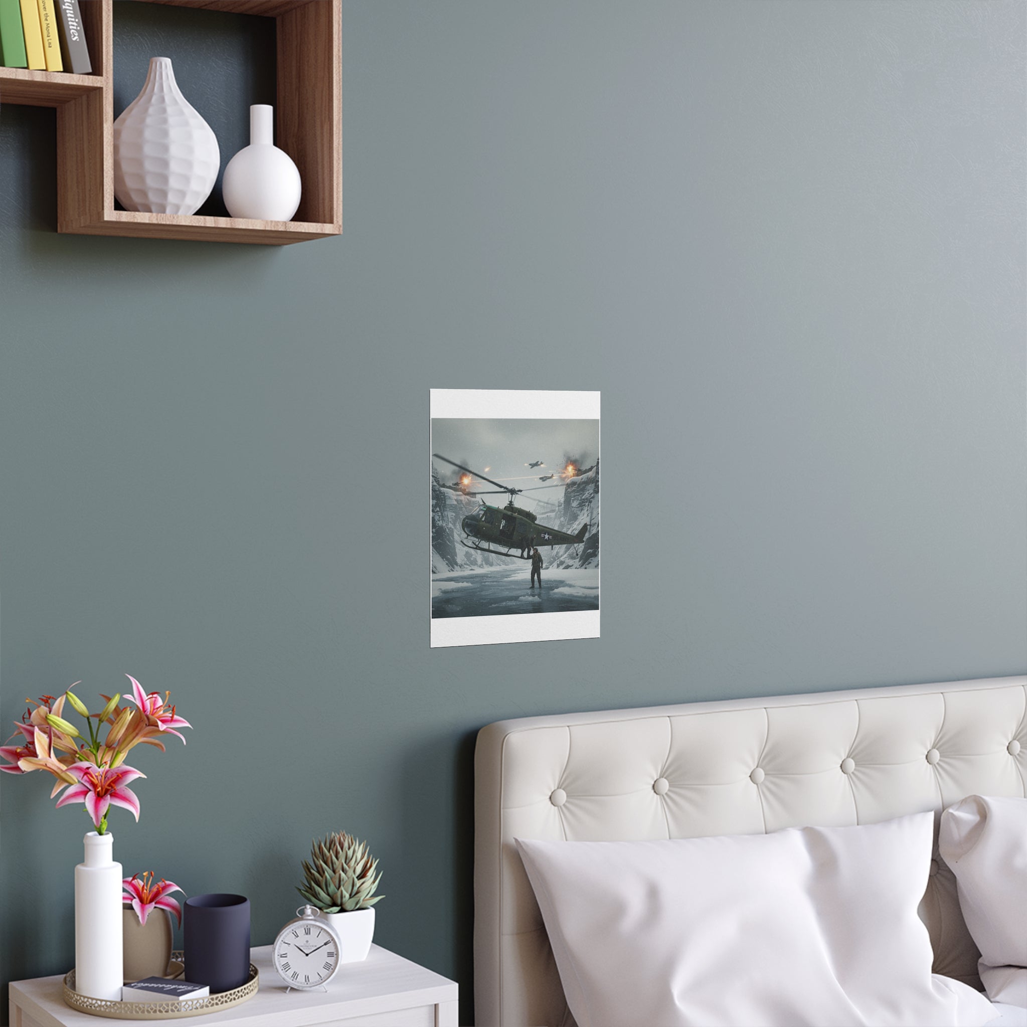 This silk-finish poster brings action and atmosphere into any room. A military helicopter hovers above a misty, tree-lined landscape — the image is crisp, color-rich and full of motion. The semi-gloss 200 gsm paper gives each print depth and a subtle sheen that keeps colors alive without glare. Waterproof and scratch-resistant, the poster stands up to damp outdoor porches as easily as it does a living room gallery wall. Choose from multiple sizes and orientations to suit a compact bedroom, a study wall, or an outdoor nook that needs a bold focal point. The result is a durable, high-impact print that feels lived-in and adventurous rather than fragile.