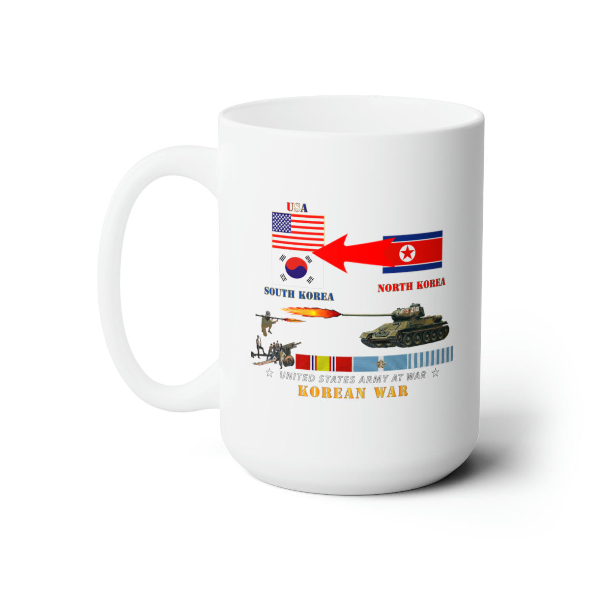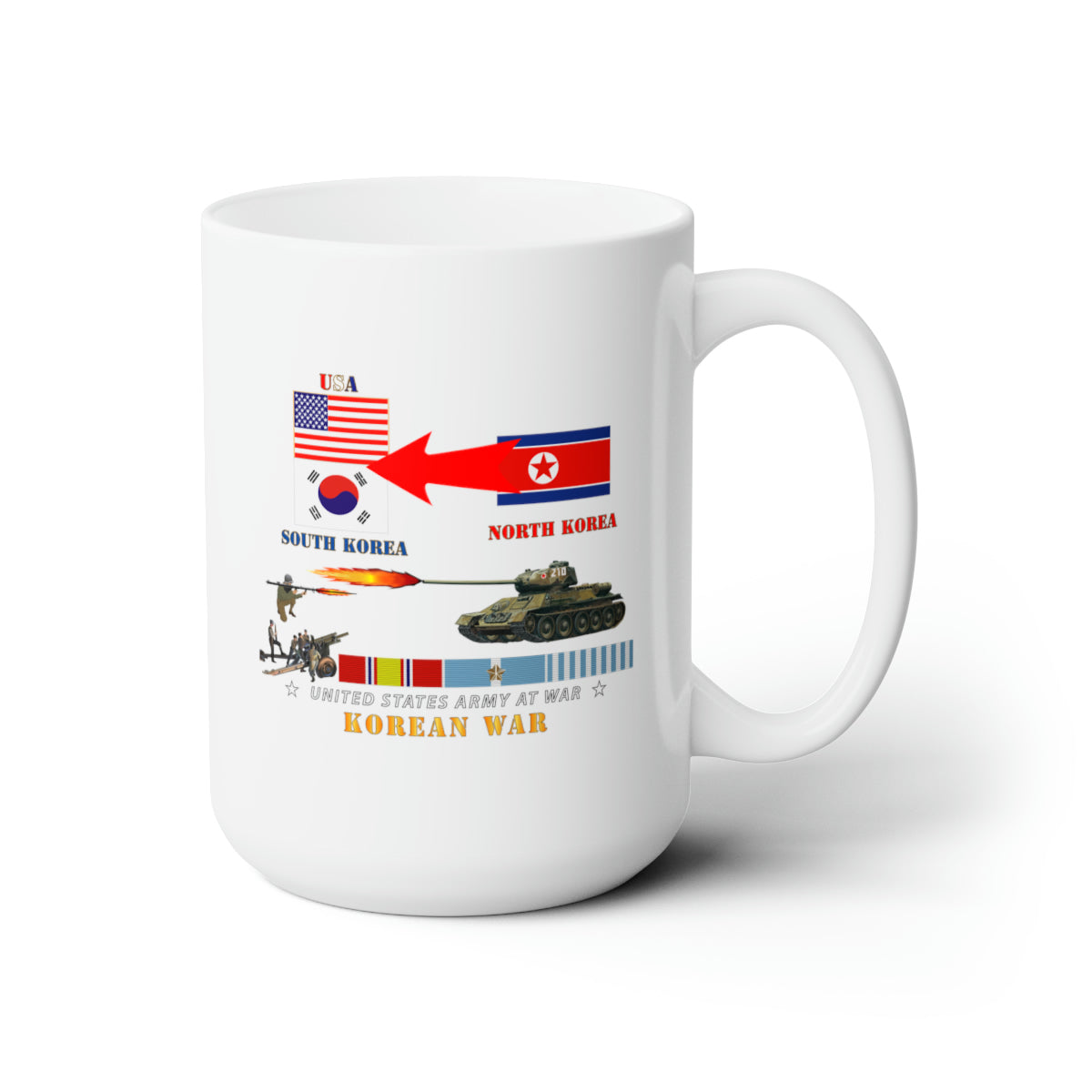 White Ceramic Mug 15oz - Army - Korean War - USA - South Korean Vs North Korea