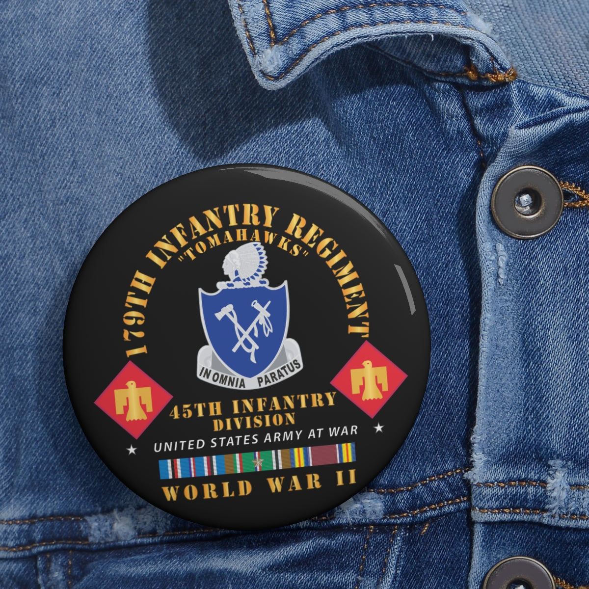 The 179th Infantry Regiment, known as the "Tomahawks," served as part of the 45th Infantry Division during World War II. Their Distinctive Unit Insignia (DUI) represents their proud heritage and combat service. The regiment played a key role in major European campaigns, earning the European-African-Middle Eastern Campaign Medal (EUR SVC) for their contributions.