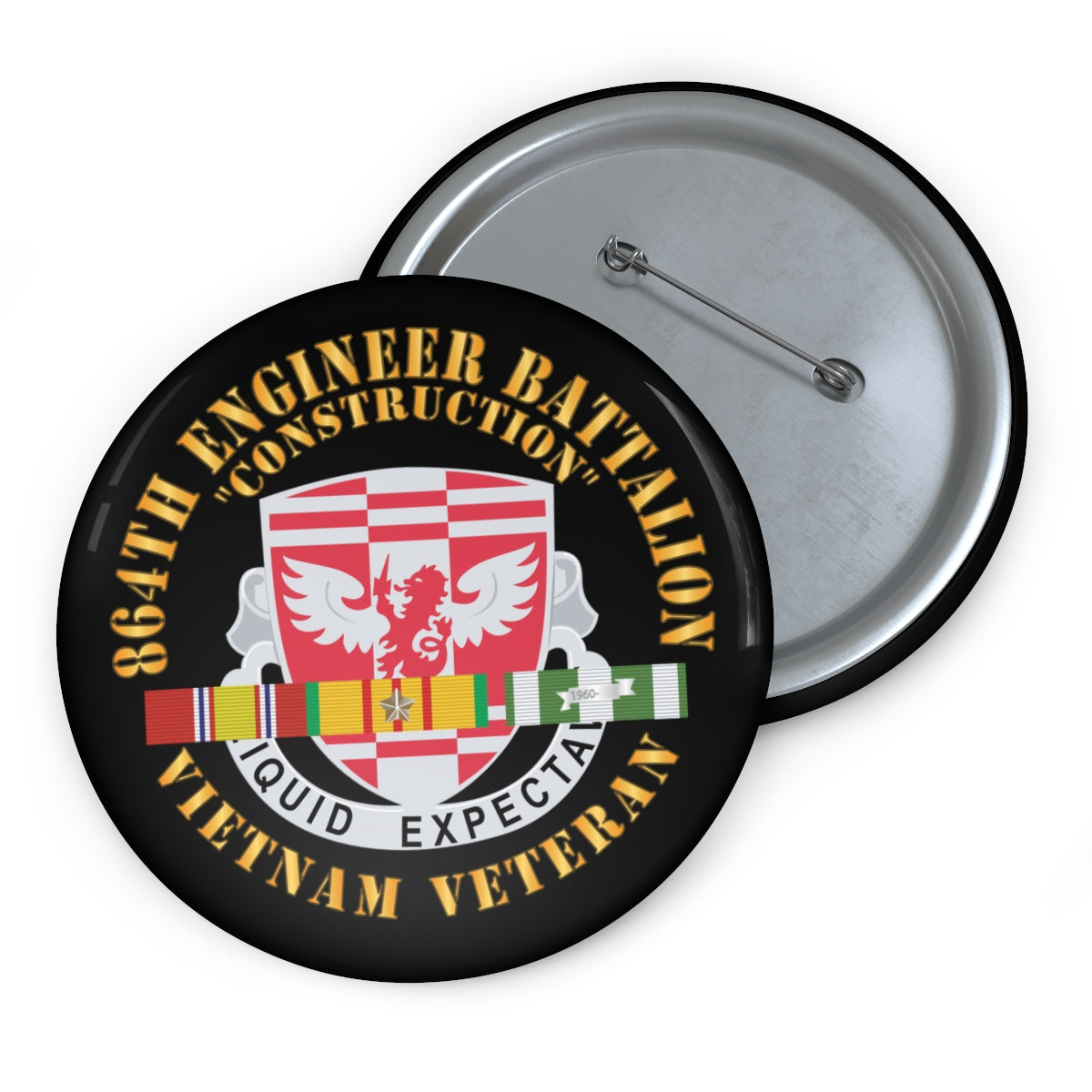 Custom Pin Buttons - 864th Engineer Battalion with Vietnam Service Ribbon X 300