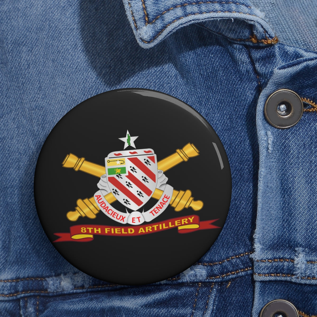 Custom Pin Buttons - 8th Field Artillery w Br - Ribbon