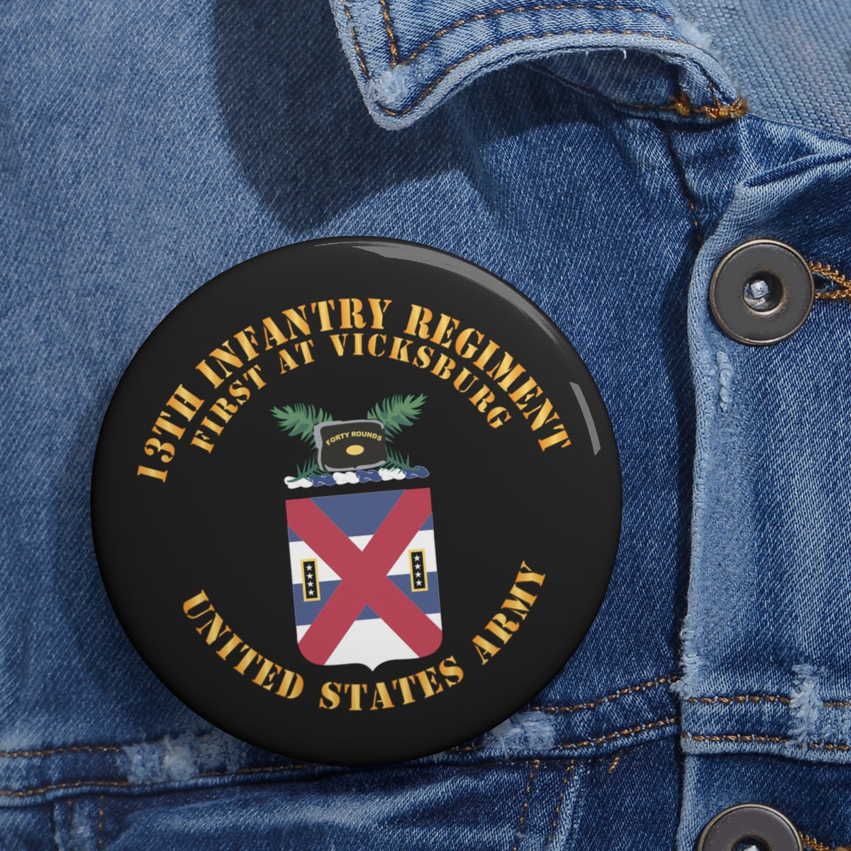 Custom Pin Buttons - COA - 13th Infantry Regiment X 300