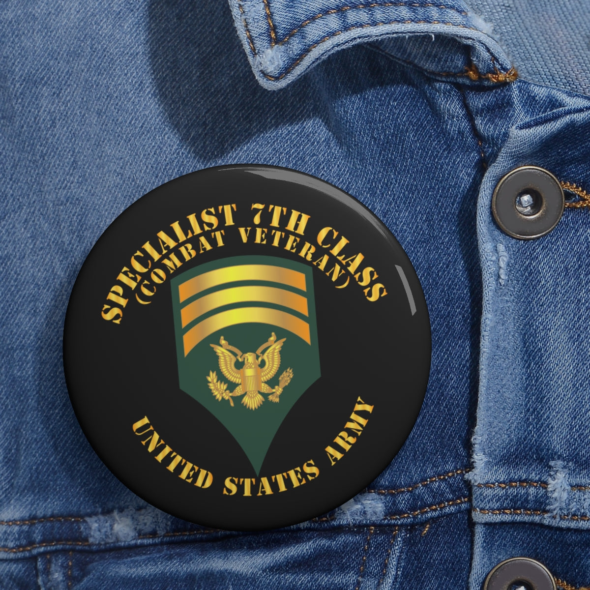 Custom Pin Buttons - Specialist 7th Class - SP7 - Combat Veteran