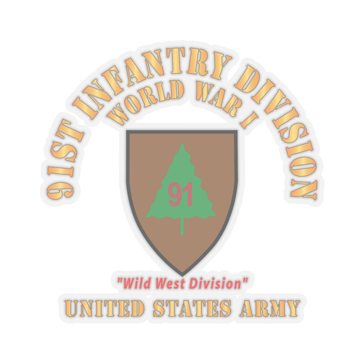 Kiss-Cut Stickers - Army - SSI - 91st Infantry Division - WWI - Wild West Division - US Army X 300