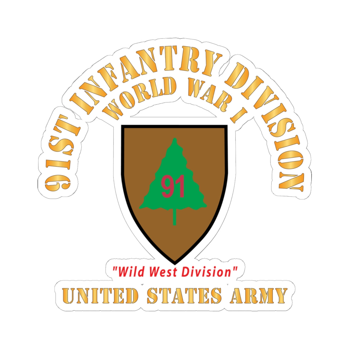 Kiss-Cut Stickers - Army - SSI - 91st Infantry Division  - WWI - Wild West Division - US Army X 300