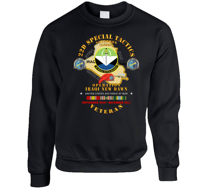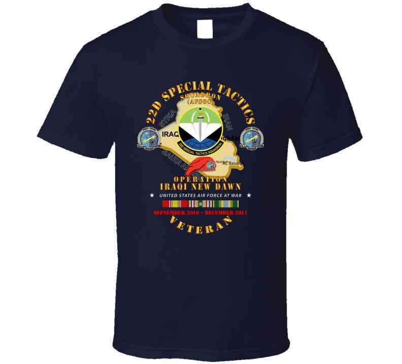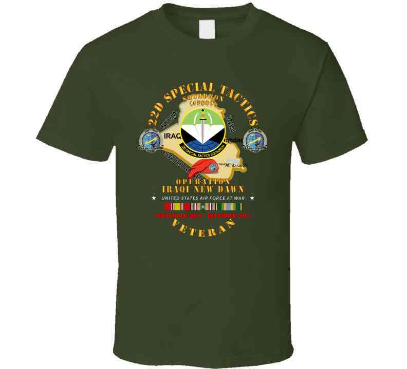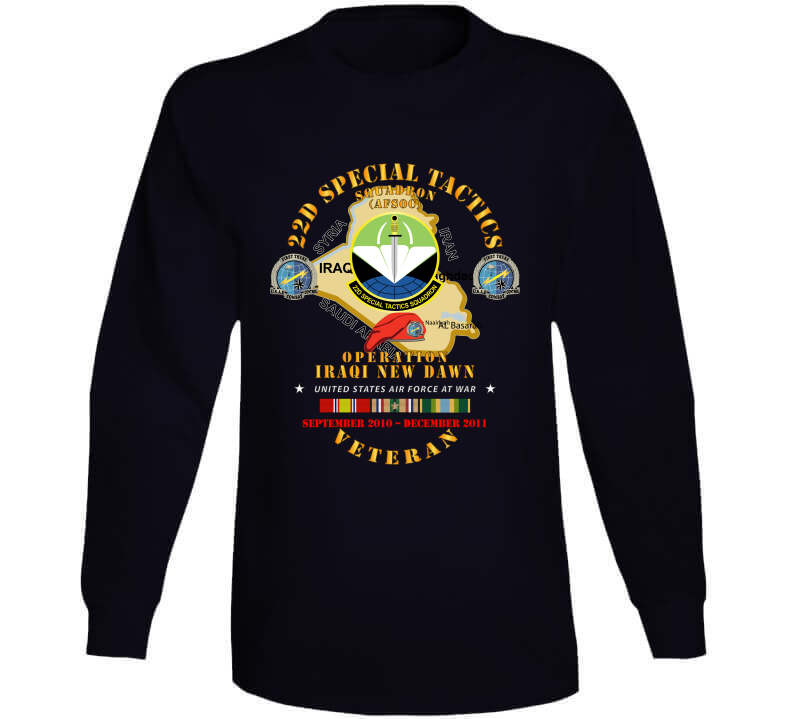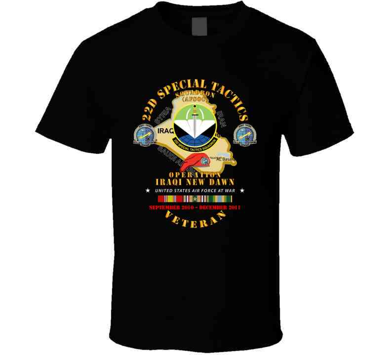 USAF - 22d Special Tactics Squadron - Opn Iraqi New Dawn - 2011 W IRAQ SVC T Shirt, Various, Classic, Black