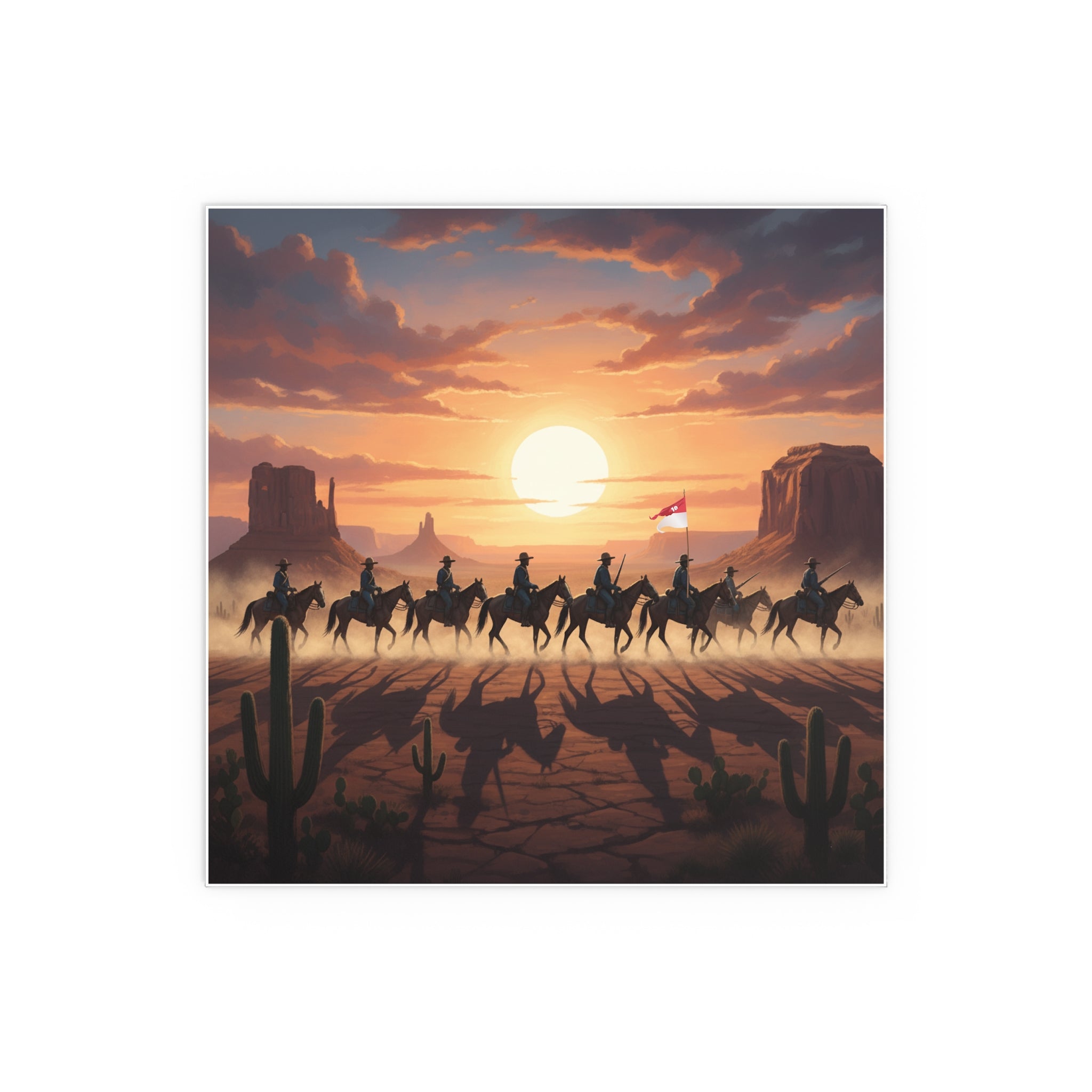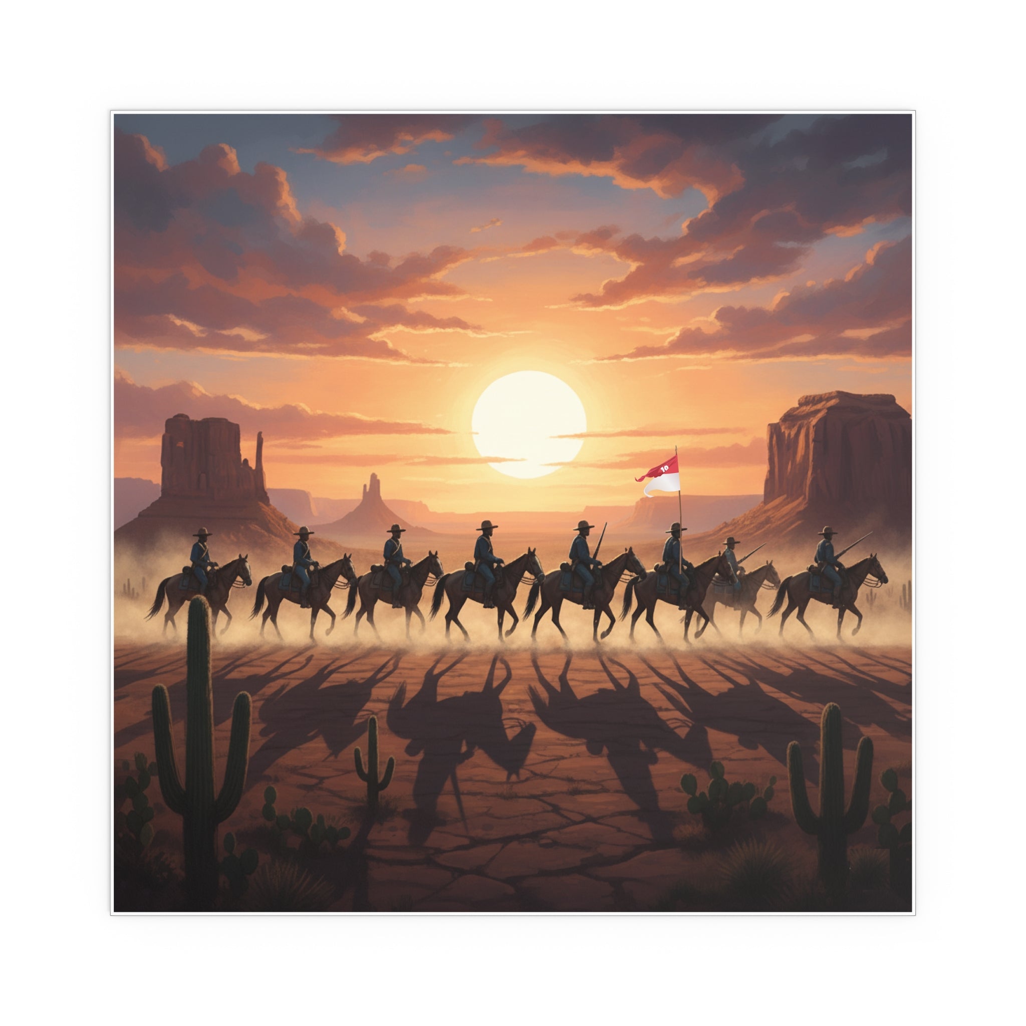Indoor and Outdoor Silk Posters - 10th Cavalry on Patrol in the sunset w 10th Cav Guidon